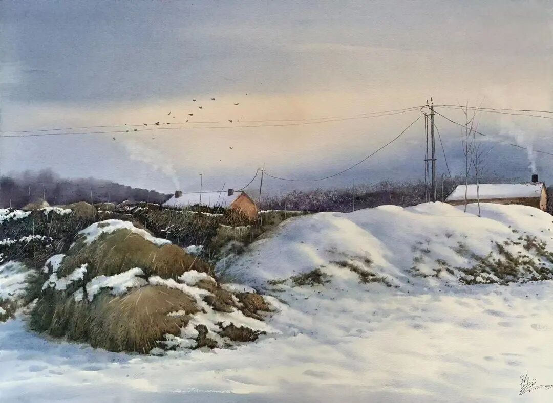 钟吉超《暮雪》水彩 76×56cm 湖南长沙