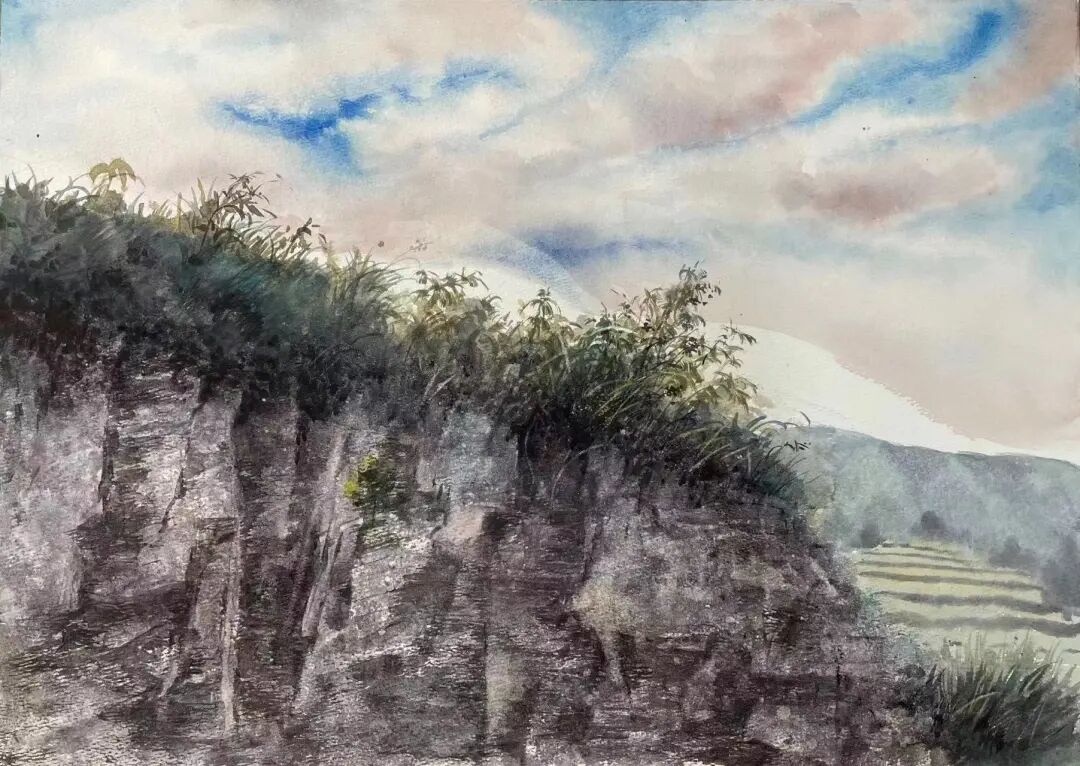 岑庆谊 《山长》水彩 53×38㎝  广东肇庆