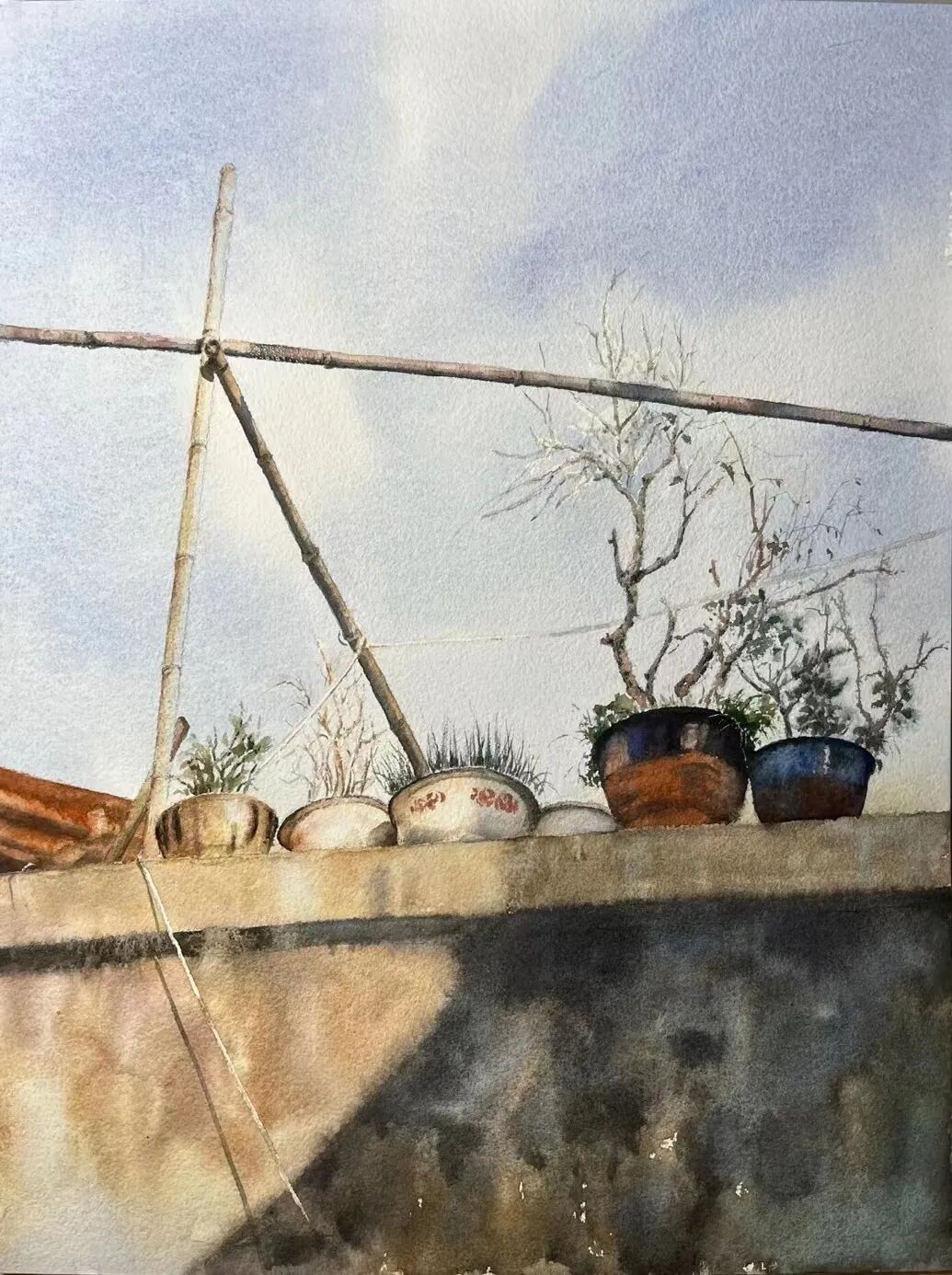 姚少虹 《午后》水性综合 35 X43cm  广州