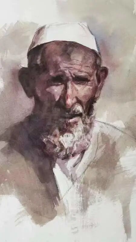 章晓《胡子大叔》水彩 61Ⅹ45cm  成都