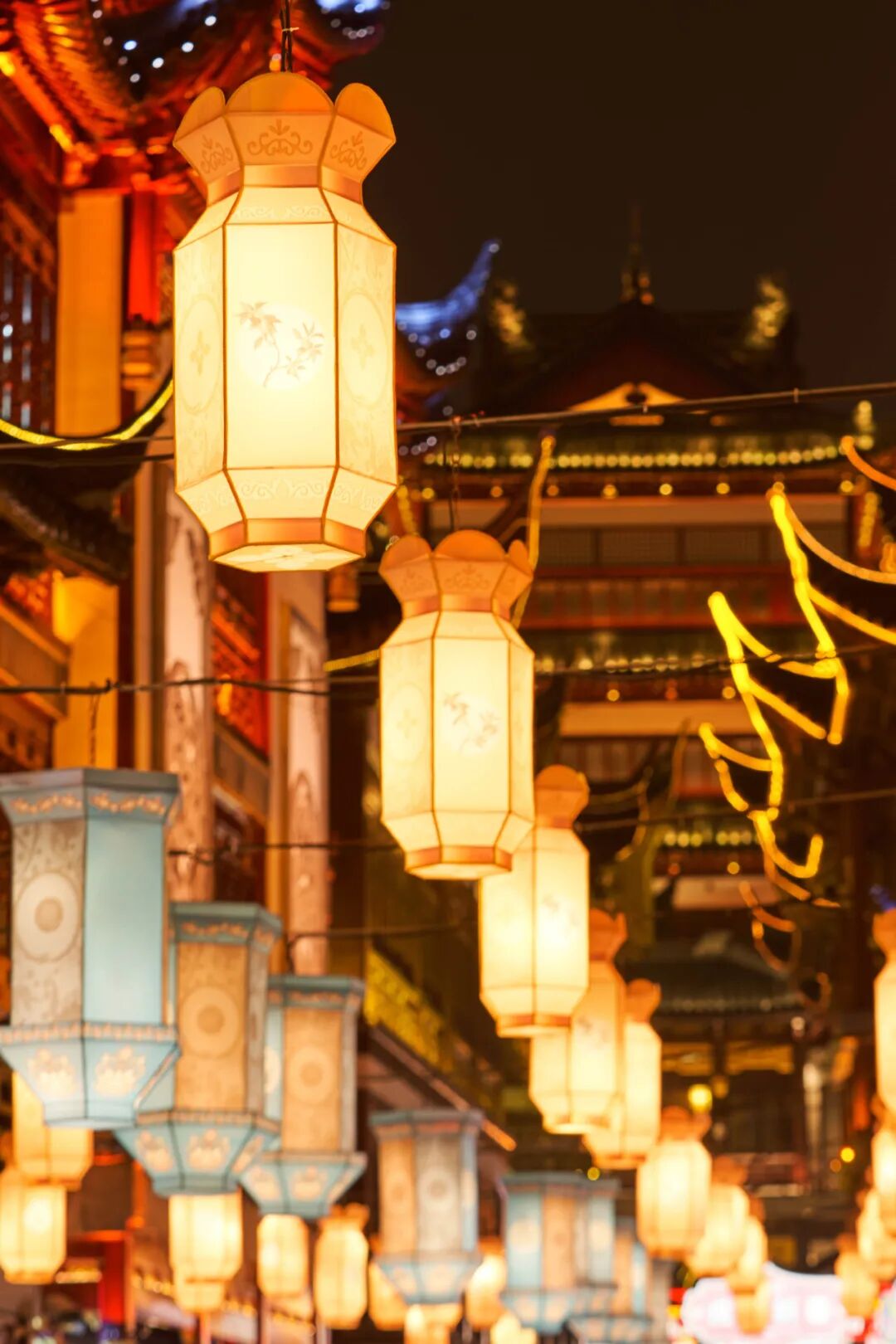 豫园呢,是老城厢仅存的明代园林。每年的正月十三日都会在豫园举行灯会,当日为上灯日,十八日为落灯日,有“出灯、聚灯、行街、迎灯、赛灯、谢灯”几个步骤。