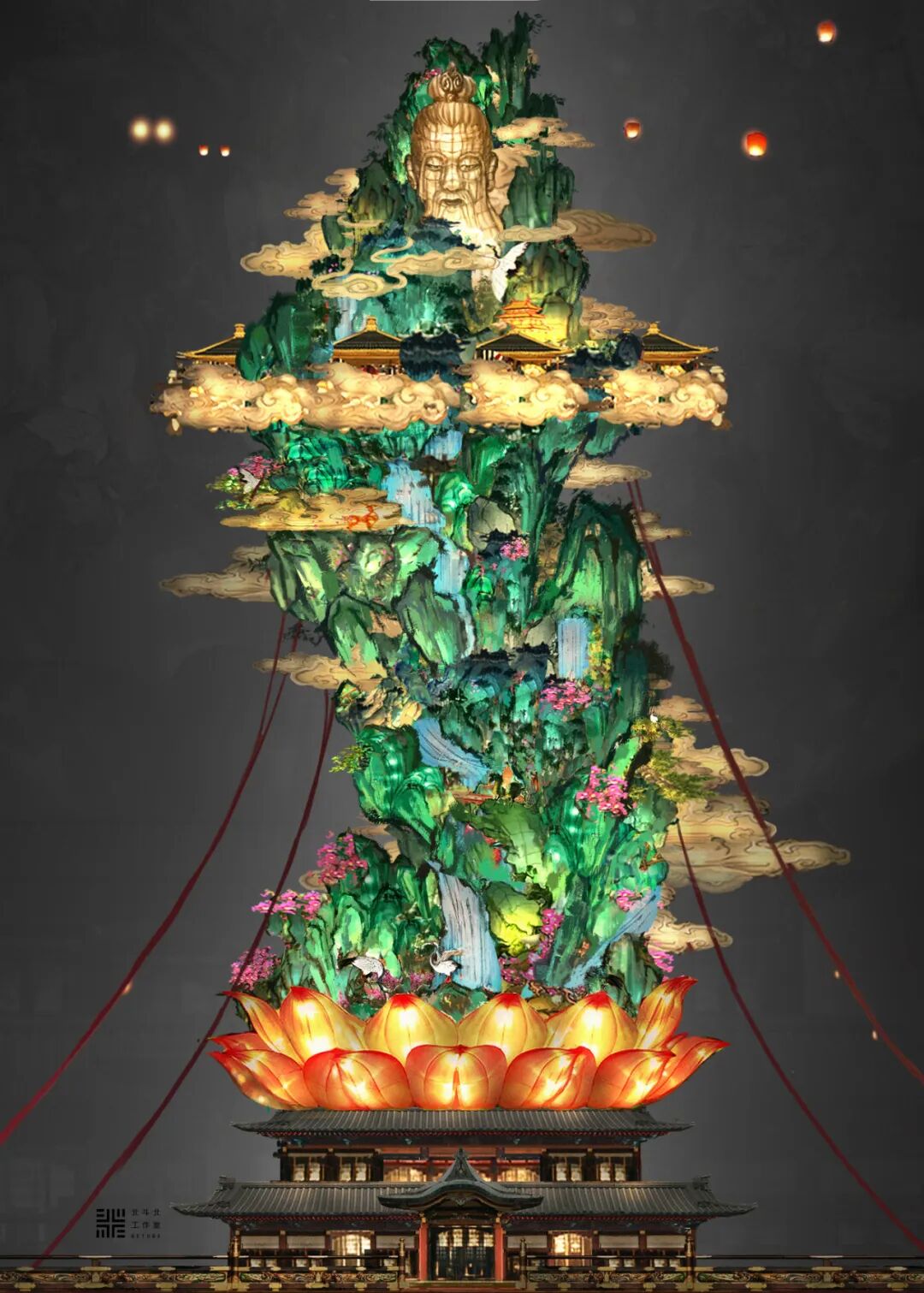 里面的上元节花灯着实又把我震撼了一次,就觉得,这肯定是电脑虚拟渲染出来的。