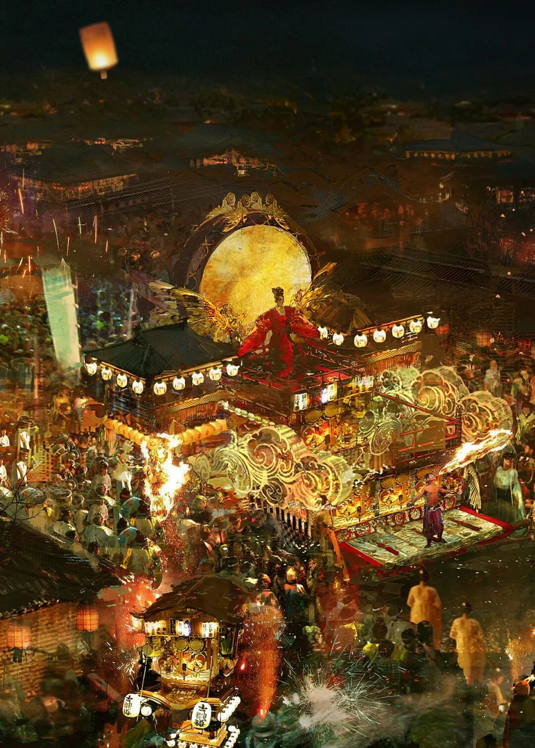 剧中,最为吸引人的花灯便是巨大的“太上玄元大仙灯”,原著小说中对它是如此描述的:此楼高逾一百五十丈,广二十四间,外敷彩缦,内置灯俑,一经点燃,便轮转不休,光耀数里。