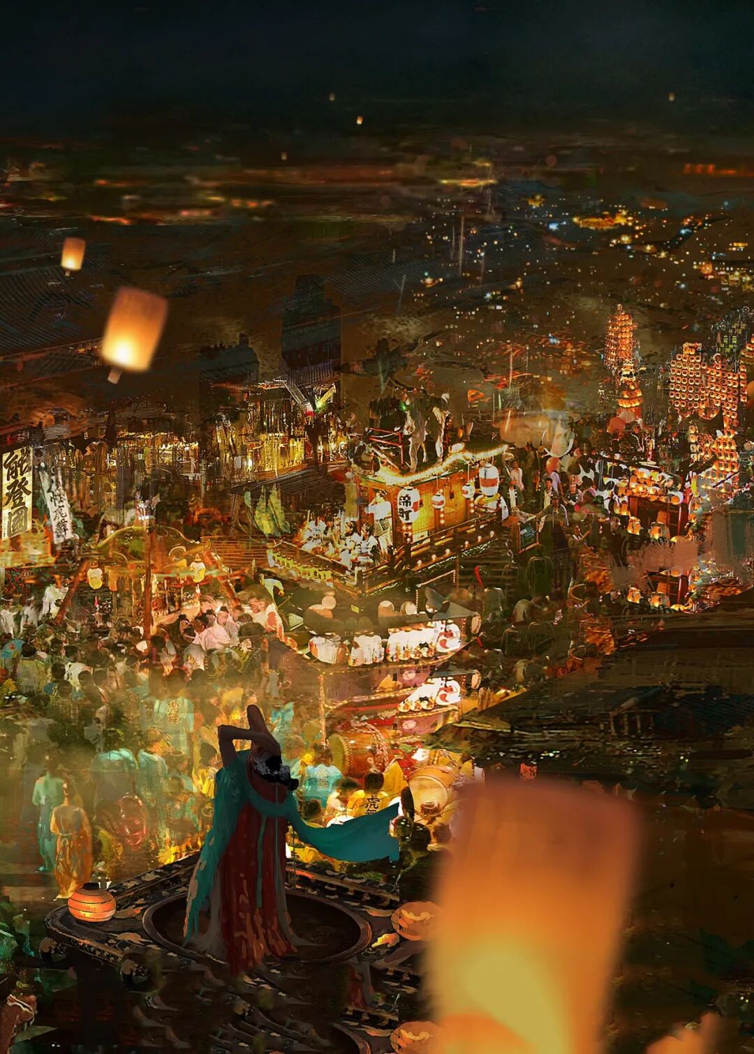 “灯火家家市,笙歌处处楼”