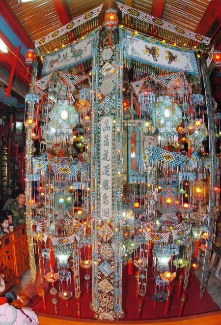 这盏珠灯,是温州现存的唯一一盏巨型彩灯,相传是康熙年间制作,高4余米,分3层,每层6盏灯,呈6面体,所用材料均来自南洋。