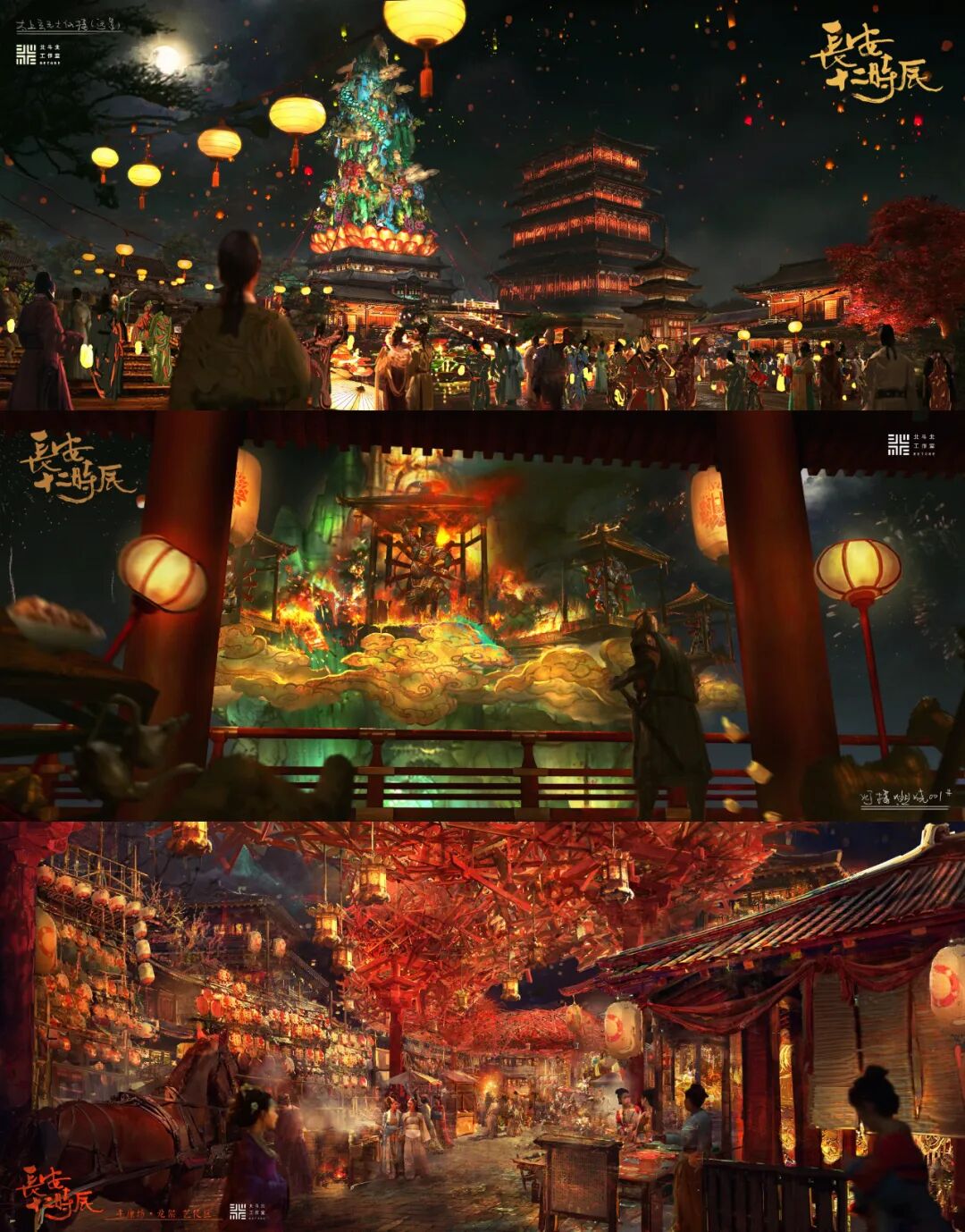 这些都是唐代诗人描绘的灯会盛景,为了从这些文字中还原唐朝灯会盛景,《长安十二时辰》摄制组耗费心力一年之久,终于找到了他们心中的“彩灯”。