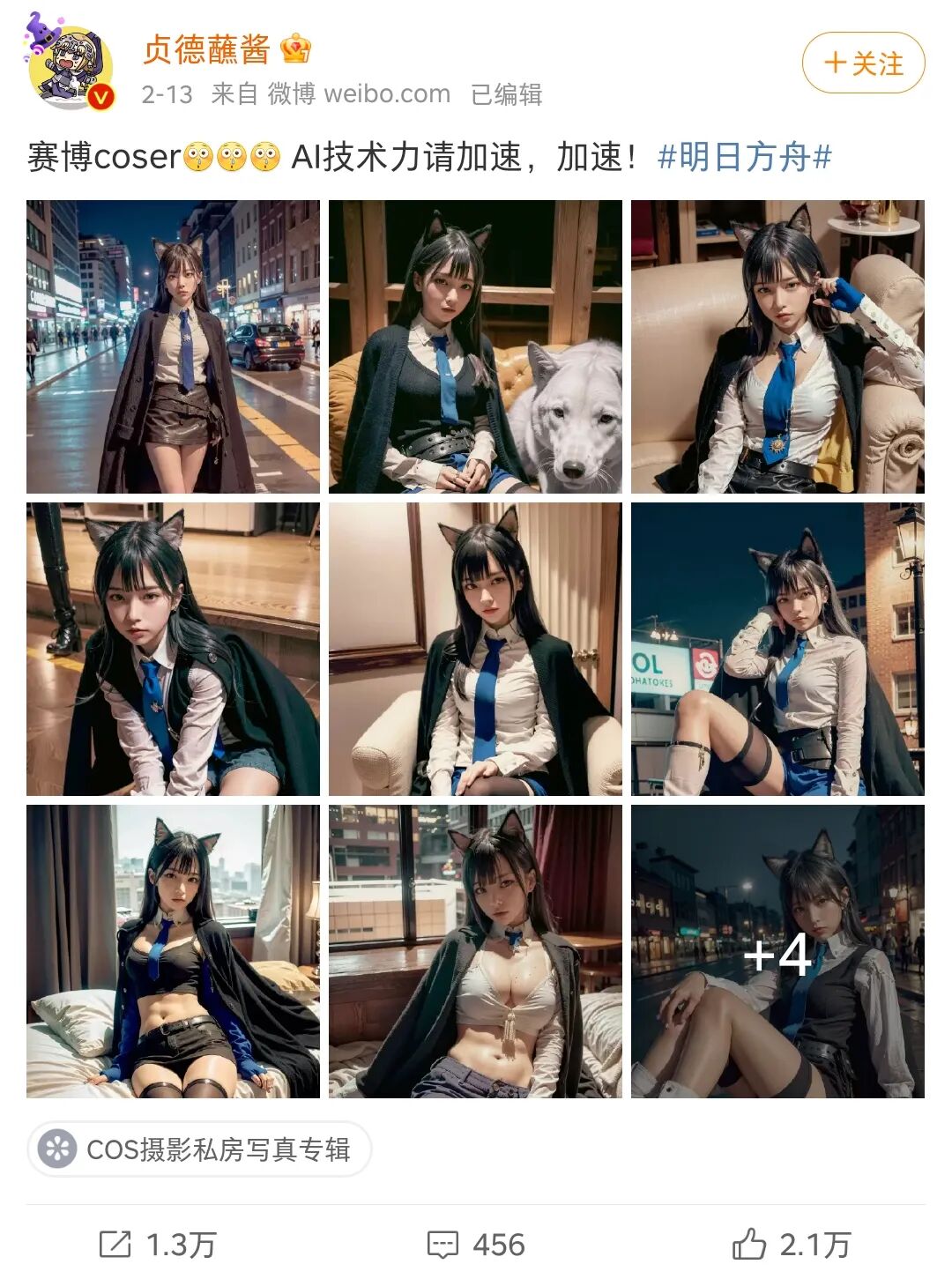 与此同时,另一个问题也已经迫在眉睫:我们对AI作画的分辨能力,可能会赶不上AI作画的发展速度。前几天,在社交媒体小范围传播的一组“赛博coser”的图片,如果不留意畸形的手指,精细度已经几近以假乱真。