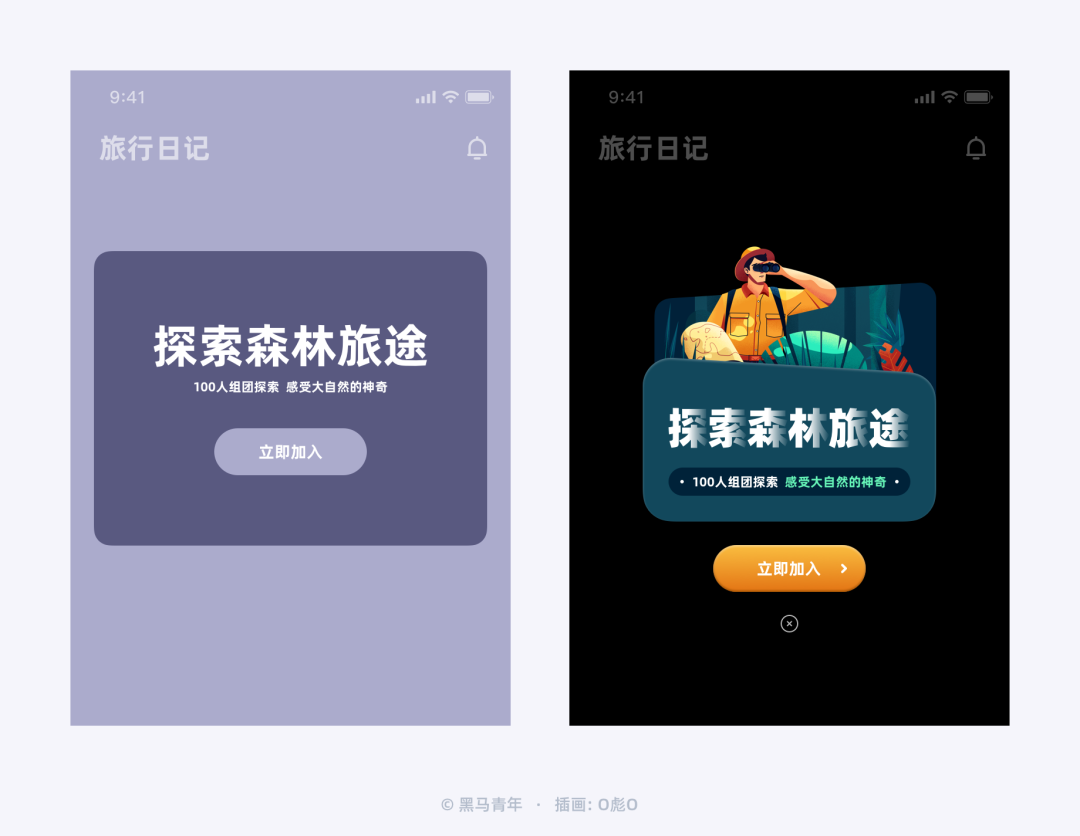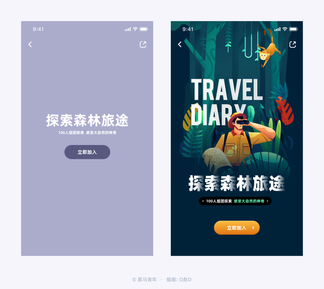 对于部分 UI 设计师来说,插画能力并不突出,单独展示插画作品不容易突出这个技能。而融入到 UI 场景中进行发挥,不仅可以提高作品的亮点,也能将插画这个附加技能的曝光度加大。