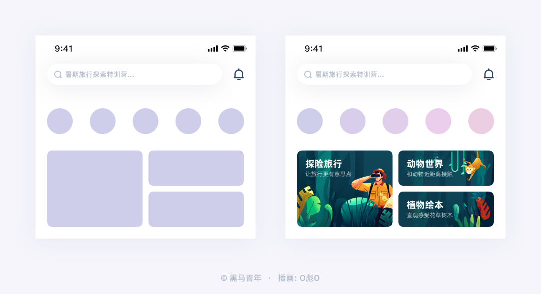 本文通过一张插画作品在 UI 场景中的运用举例,分析了插画在产品中的普及度和表现形式,以此来验证插画技能作为 UI 设计师必备技能的趋势。随着产品设计感官体验的不断升级,风格化和差异化的设计才能满足更多用户的感官需求,而风格多样的插画形式首当其冲。