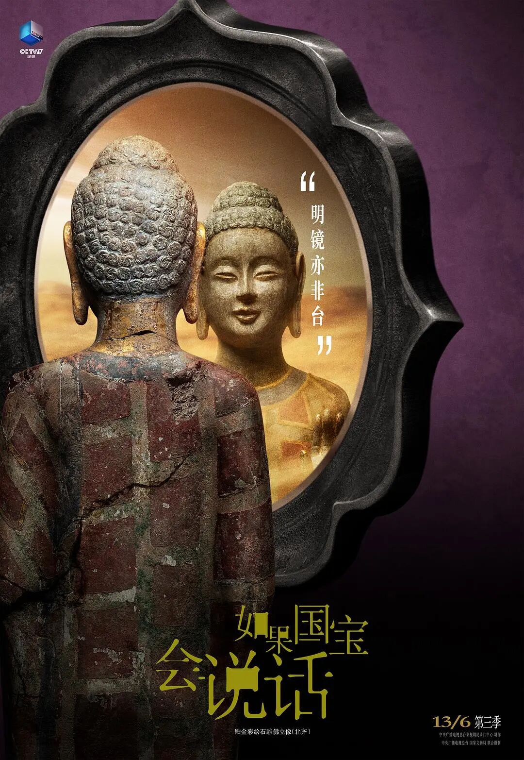海报中饱经岁月洗礼的国宝在镜子里看到了完美无瑕的自己,对镜自语道:“天生丽质难自弃”、“明镜亦非台”......