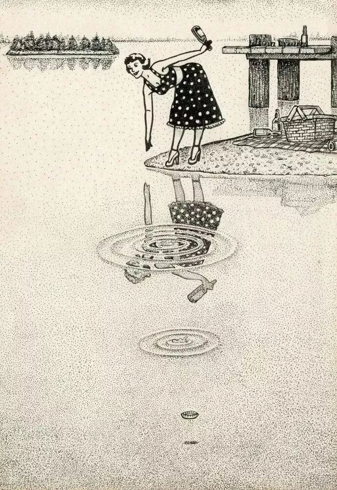 河边倒影里的女郎