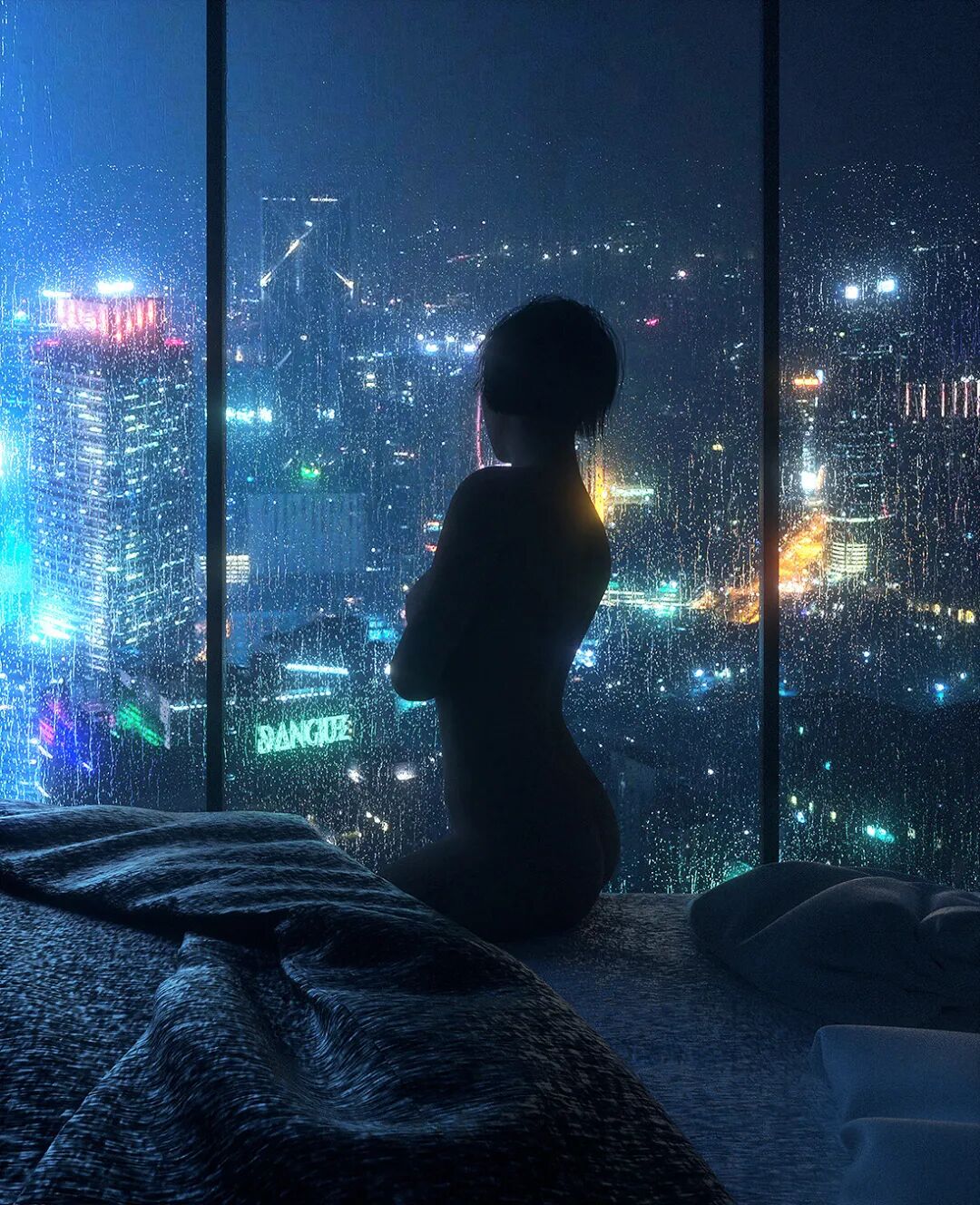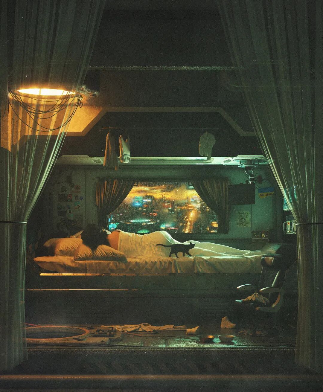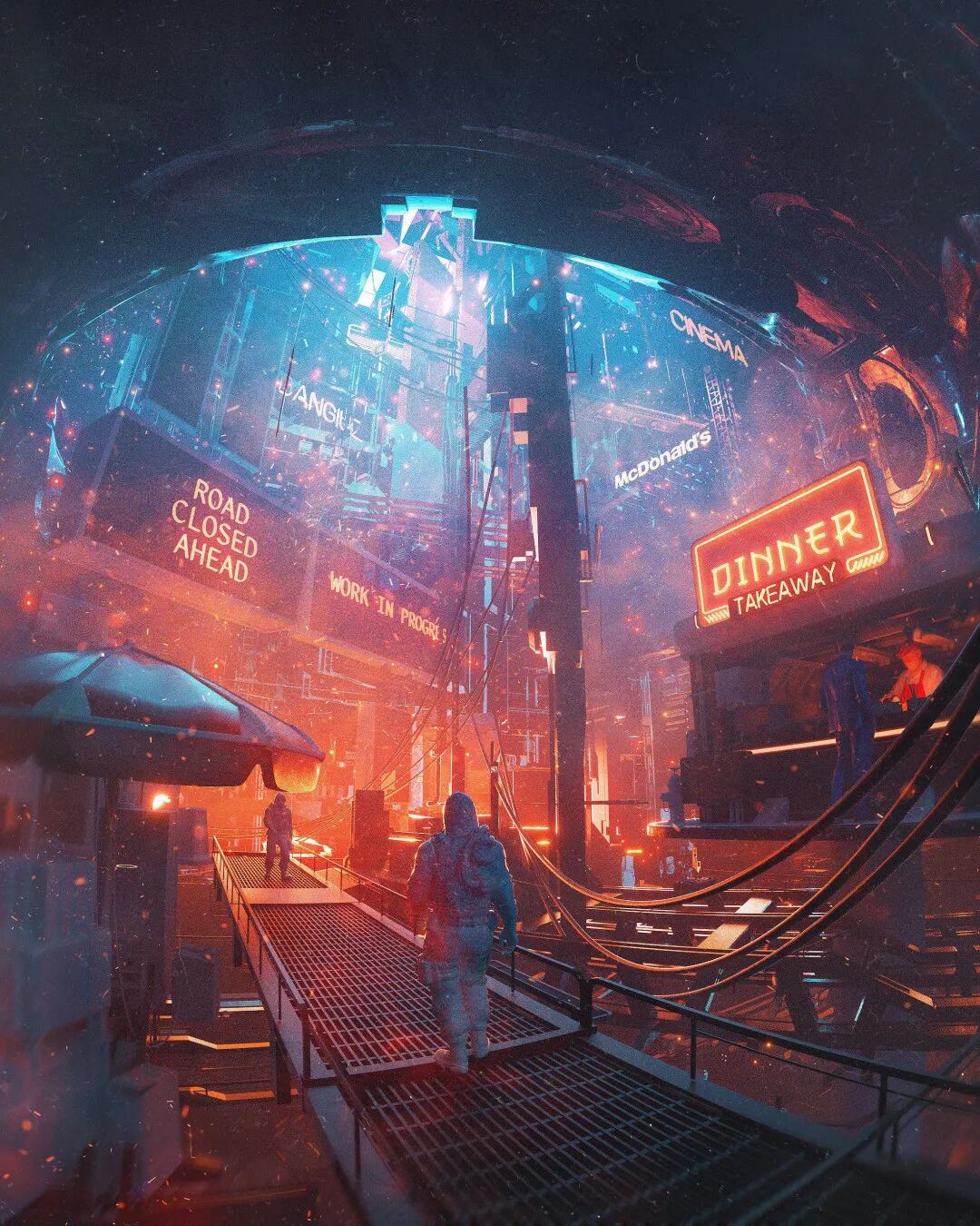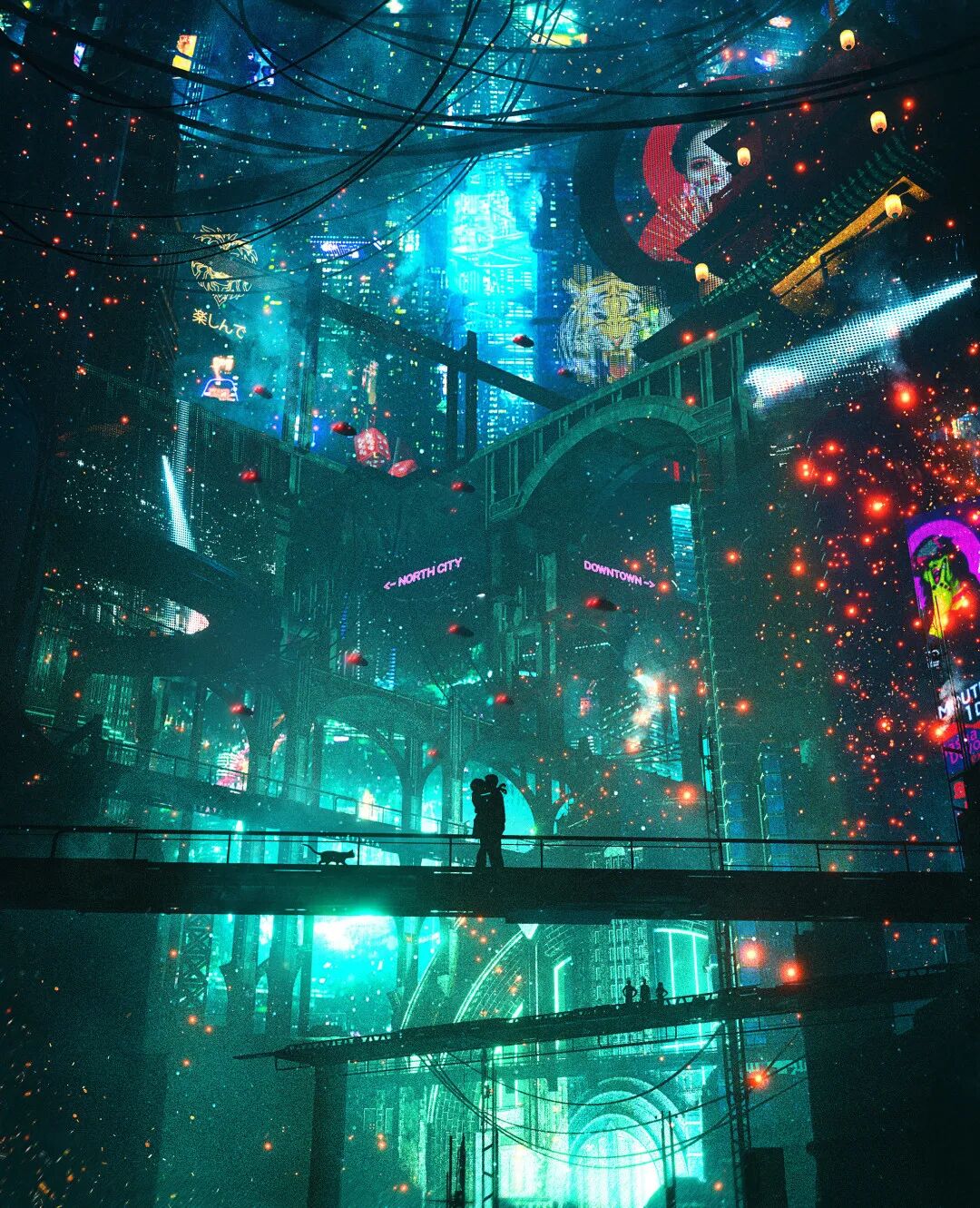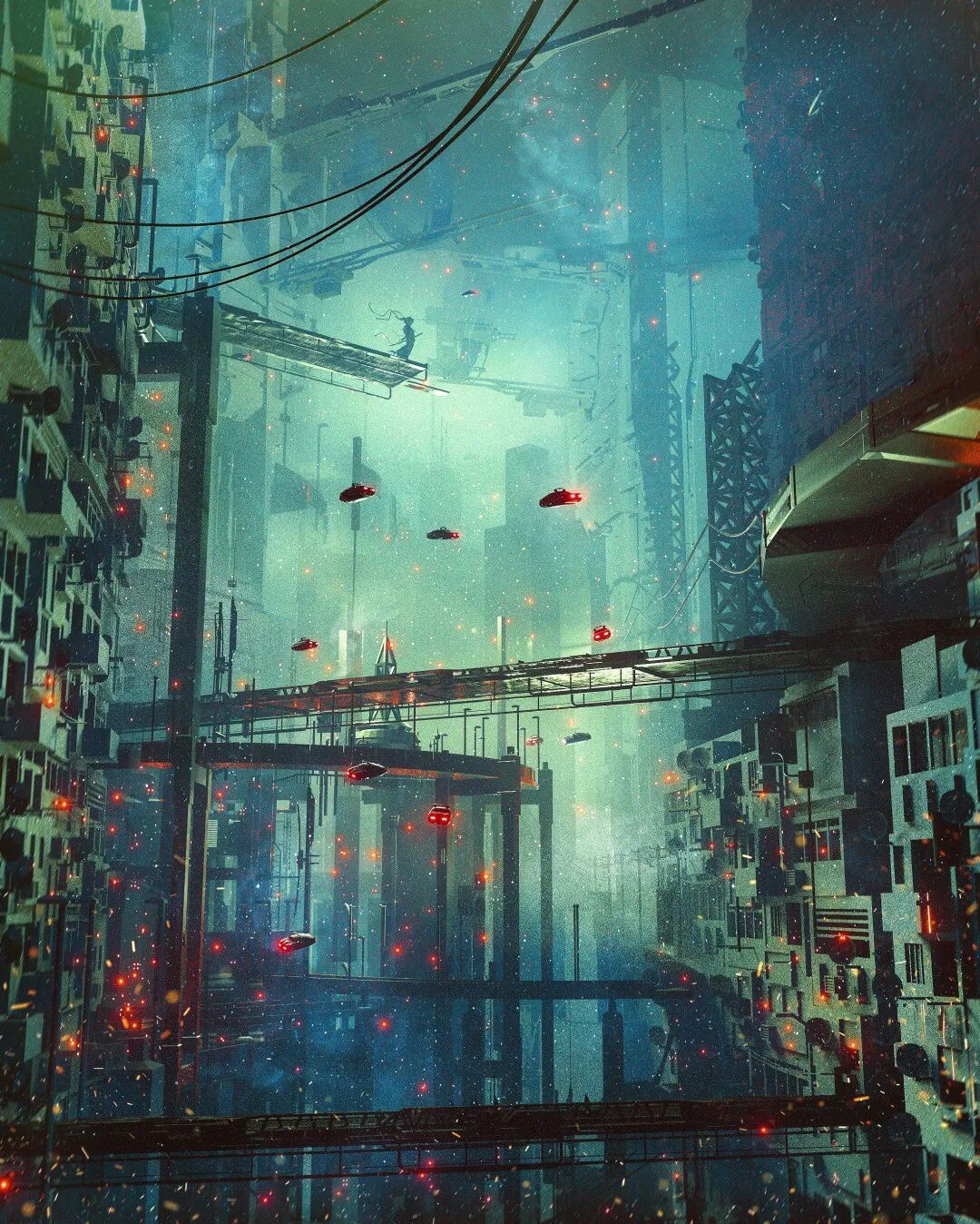 作为95后的Dangiuz创作深受《银翼杀手》、《攻壳机动队》等影视影响,所以他的作品一直以赛博朋克风格的反乌托邦未来城市为主题。