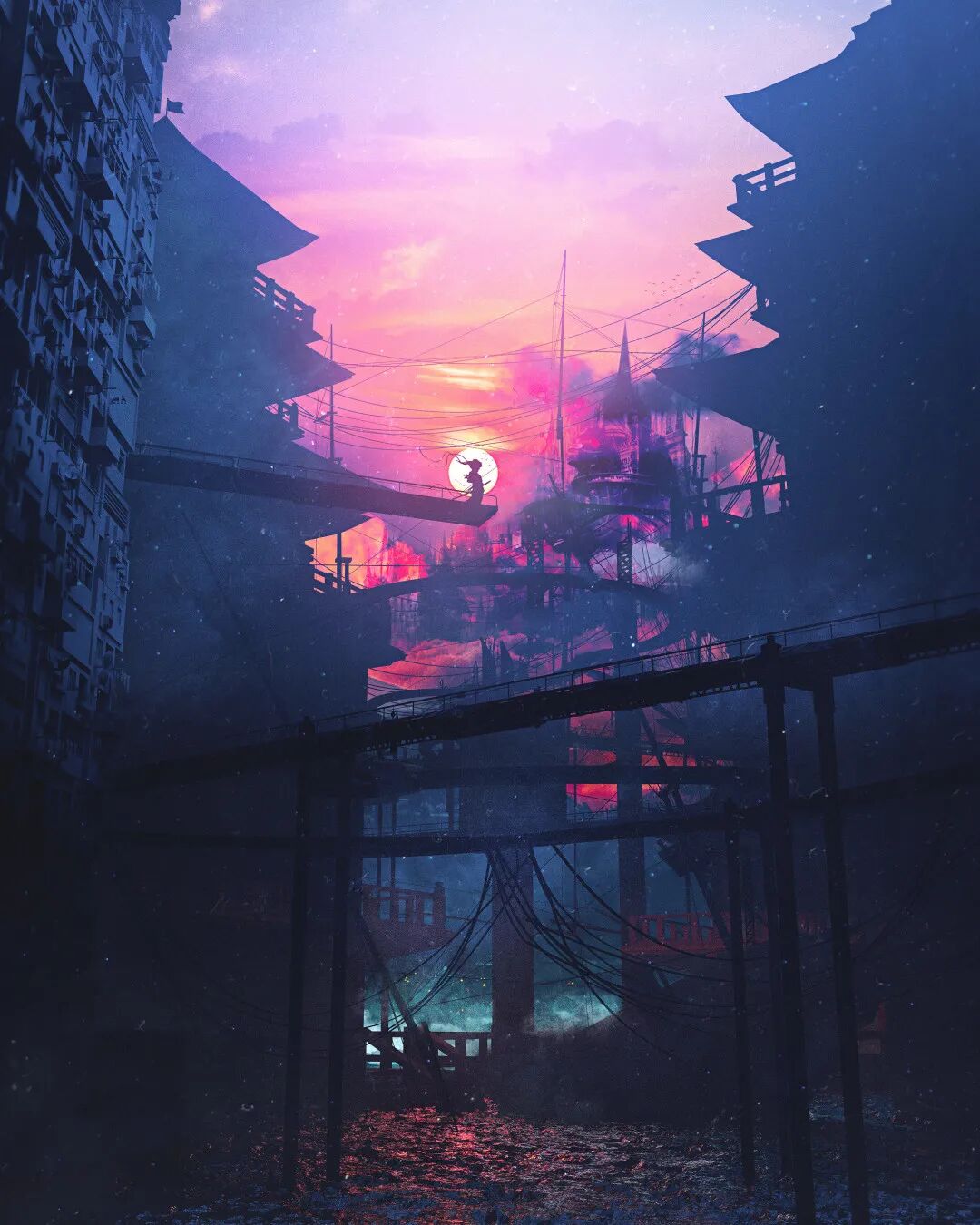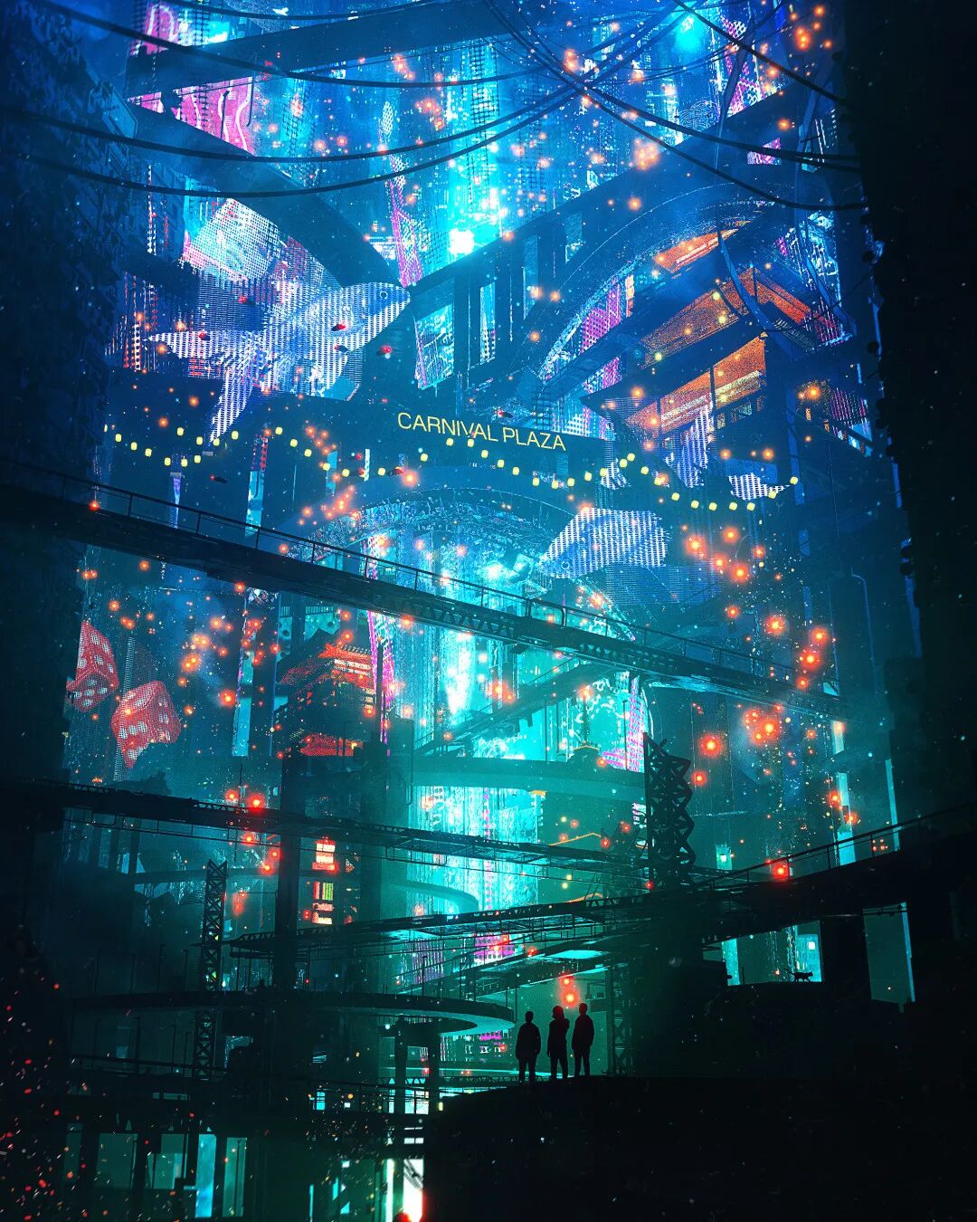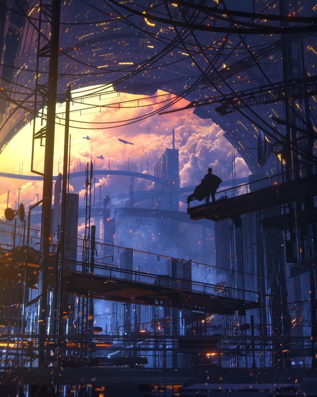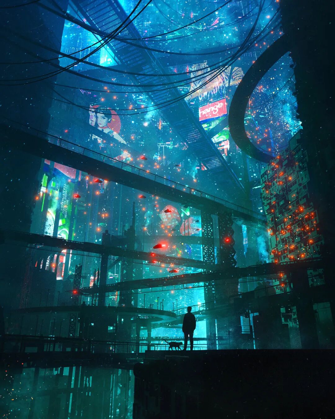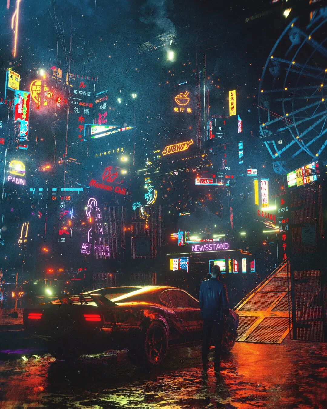 作为95后的Dangiuz创作深受《银翼杀手》、《攻壳机动队》等影视影响,所以他的作品一直以赛博朋克风格的反乌托邦未来城市为主题。