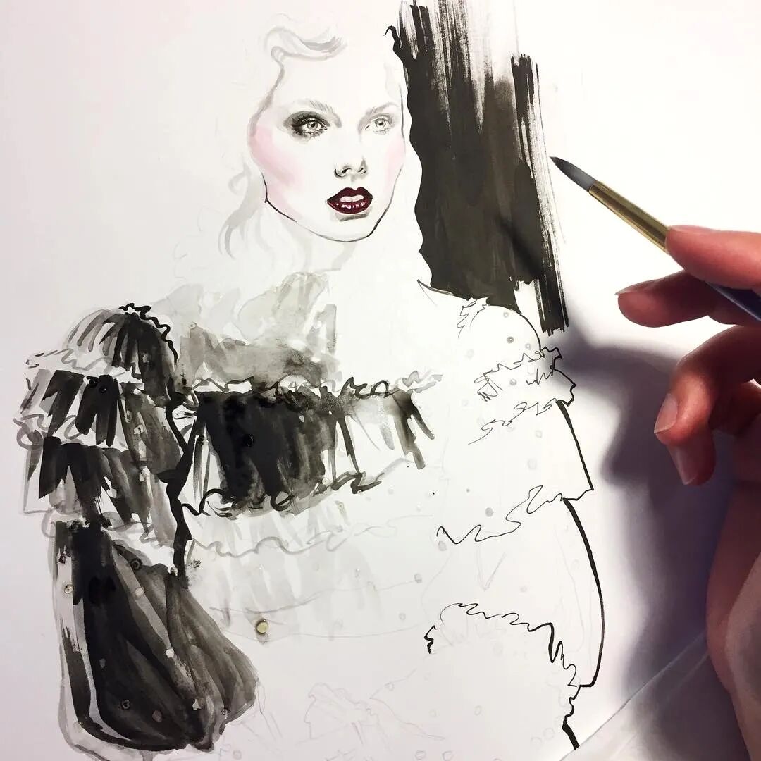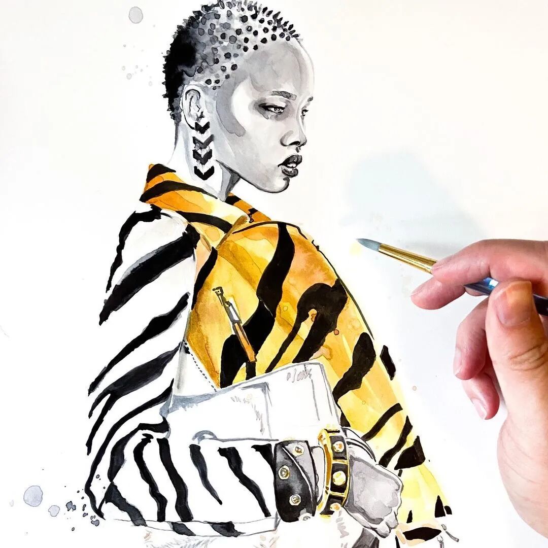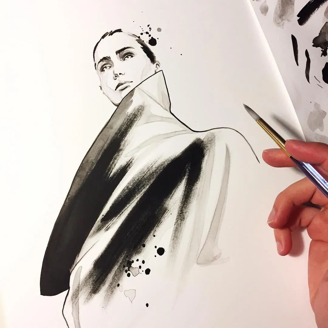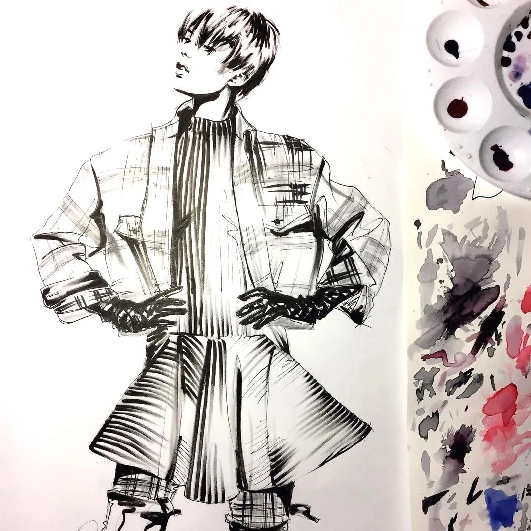 Daniel Paige已经抛弃了线对形的束缚,更多的是通过面来营造服装,通过质感去丰富画面。或许绘画在Daniel Paige的心中已经成为一种讲故事的方式,输出是为了与他人分享以获得聆听。