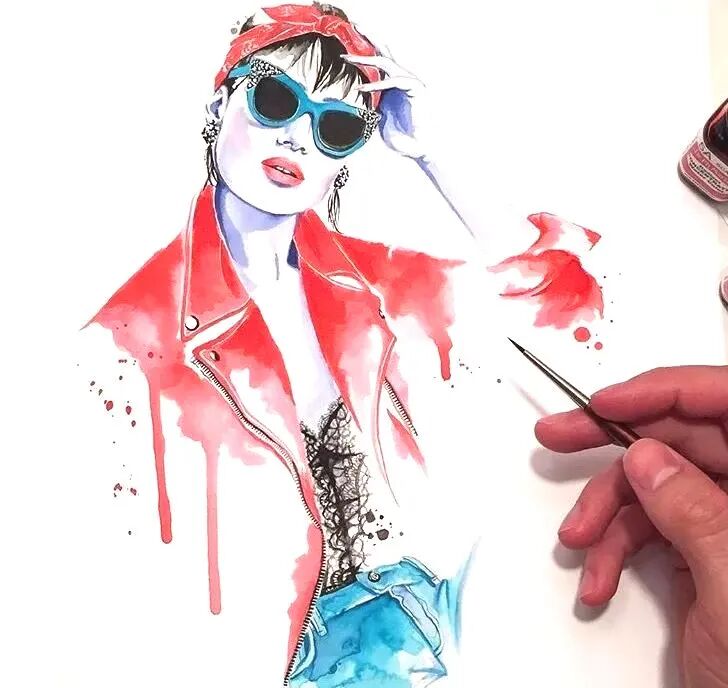 行云流水的技法,让Daniel Paige的画面看起来更加的轻松。轻薄的水彩、酷炫的马克笔、细腻的彩铅都在她的手中发挥着最大功力。
