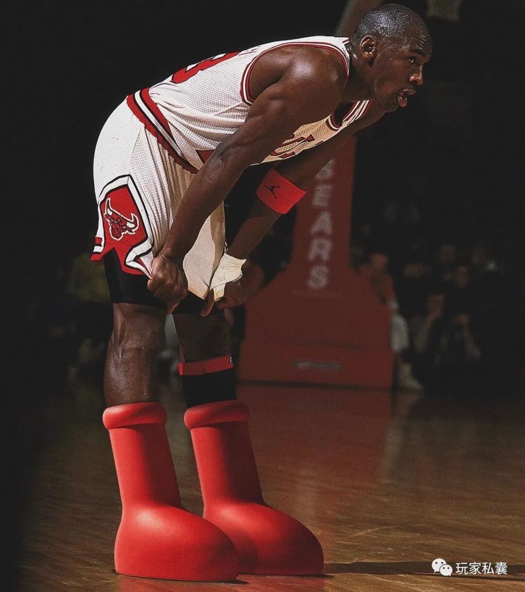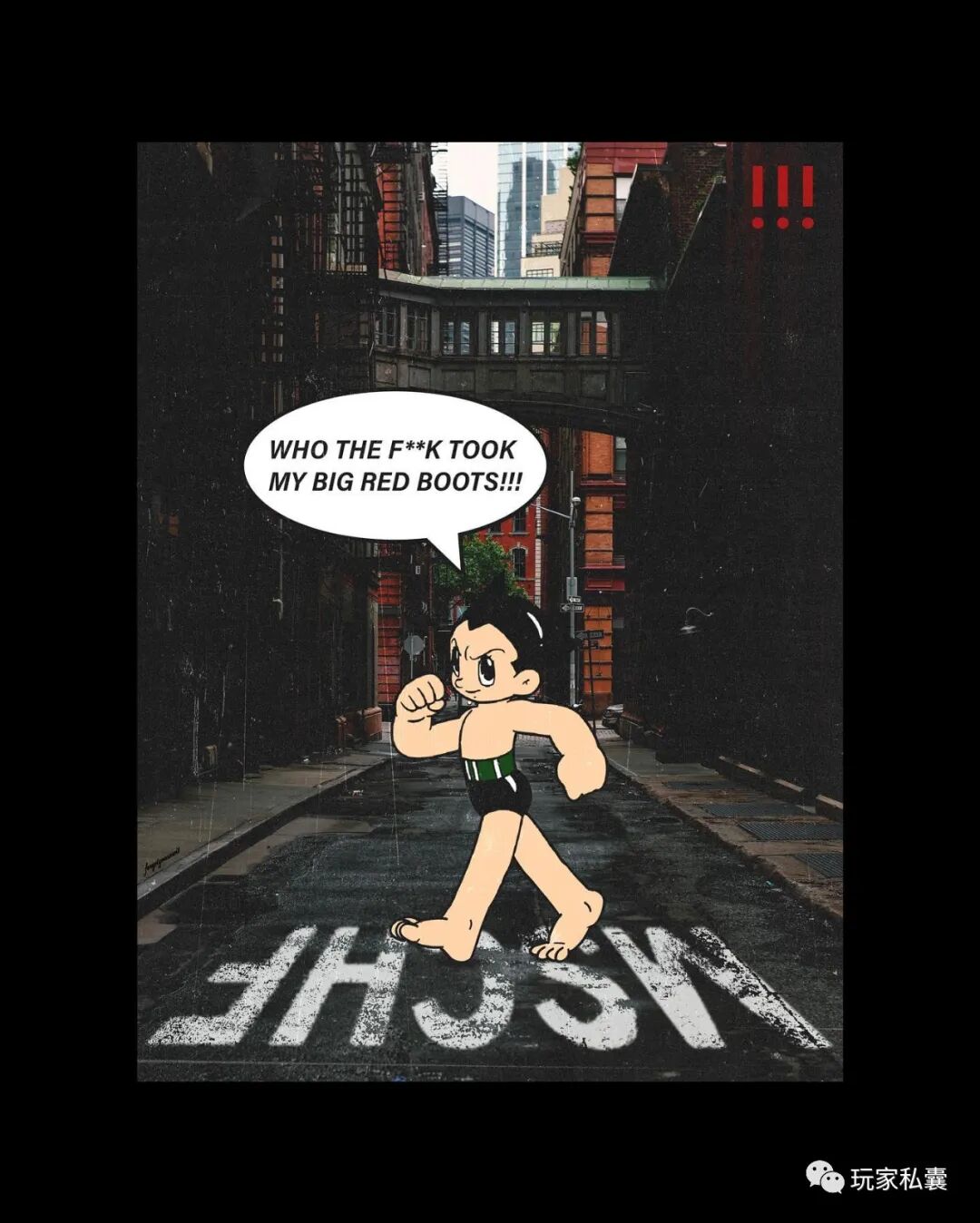 最近令MSCHF冲上潮牌热搜的产品是一双大红靴“Big Red Boots”,因为首发出镜照的时候并没有明确它的设计灵感,令一众潮人怀疑这次是不是傍上了手冢治虫的经典IP《铁臂阿童木》。