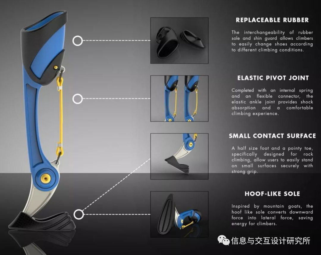 普通的假肢除了帮助使用者行走以外,还会去模拟正常腿脚的外观,让使用者看起来与正常人无异。而KLIPPA则不一样,它的设计是围绕着“帮助残疾人参与攀岩活动”而展开的。
