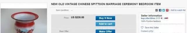 几年前,一家德国拍卖公司上拍了一件中国80年代家户喻晓的红双喜牌痰盂,并标注此物件为洋彩仿铜胎画珐琅鸳鸯莲池纹喜字花囊。