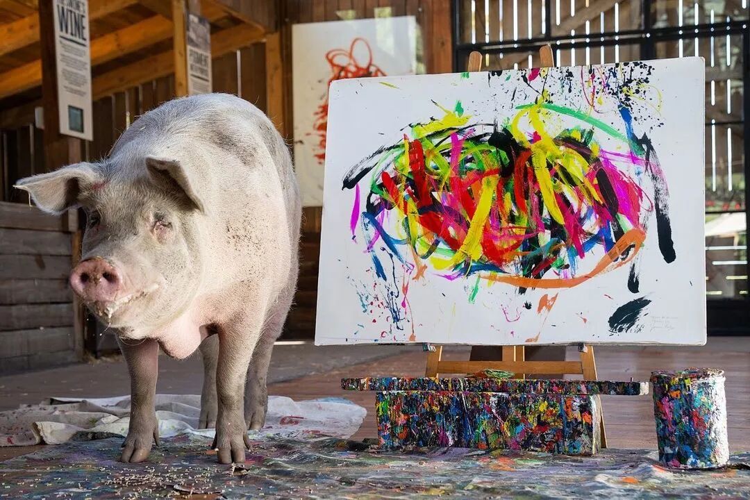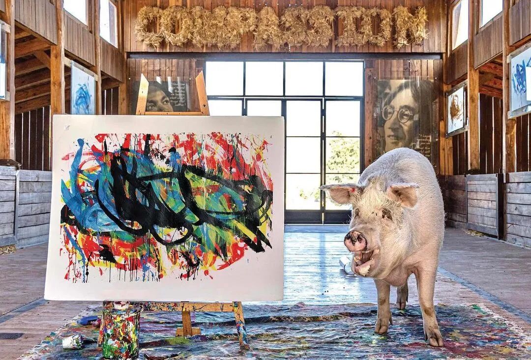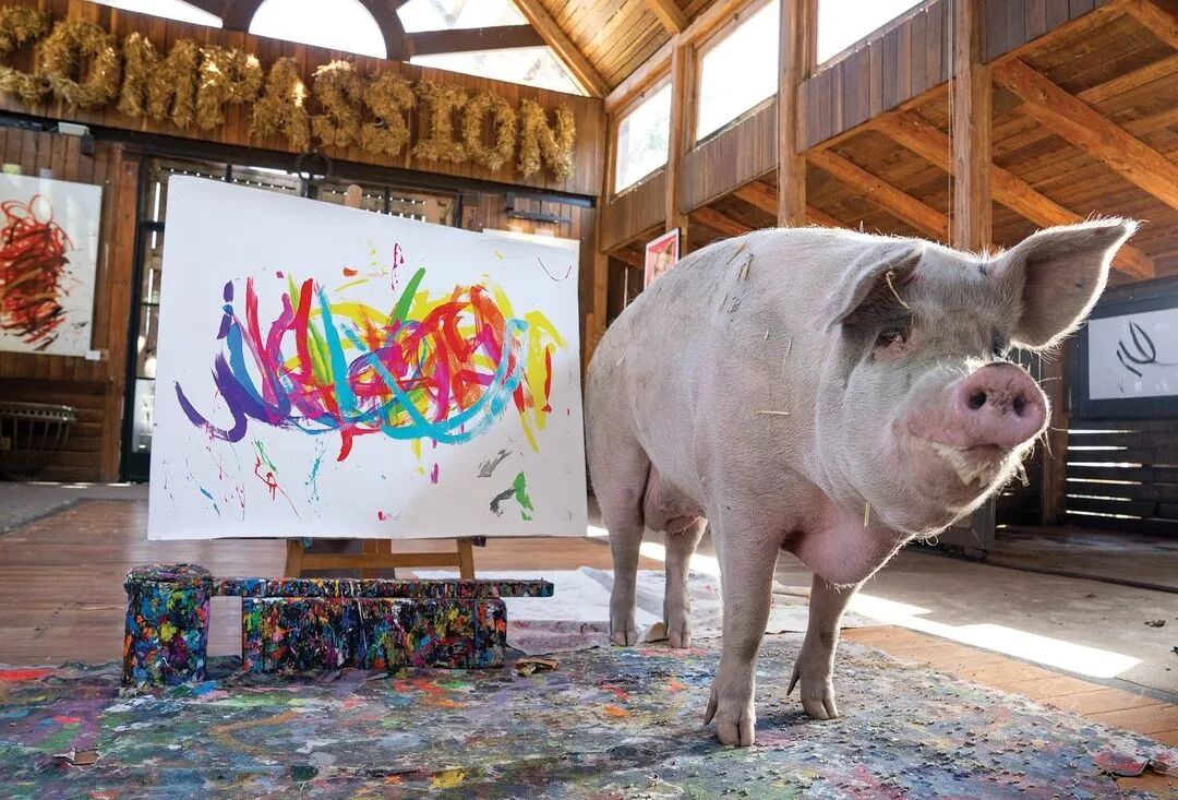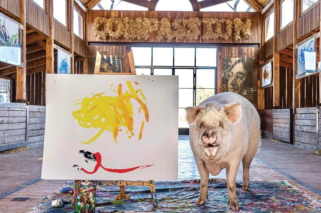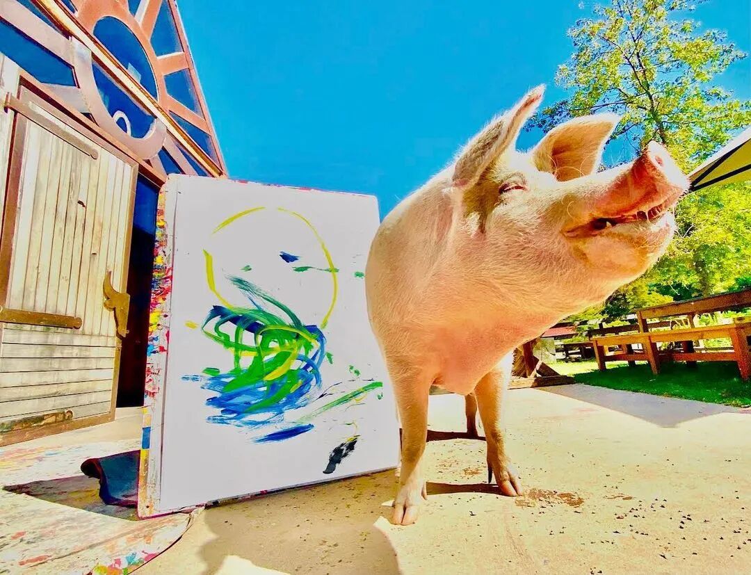 从那时起,Pigcasso创作了数百件艺术品,其中一些在官方网站上售价高达数千美元。据报道,其中一幅甚至卖到了2万多美元,这使它成为有史以来最昂贵的动物画。通过出售 Pigcasso艺术品筹集的所有资金都投资于农场保护区,这里不仅是猪的家园,也是牛、鸡、羊和其他获救动物的家园。