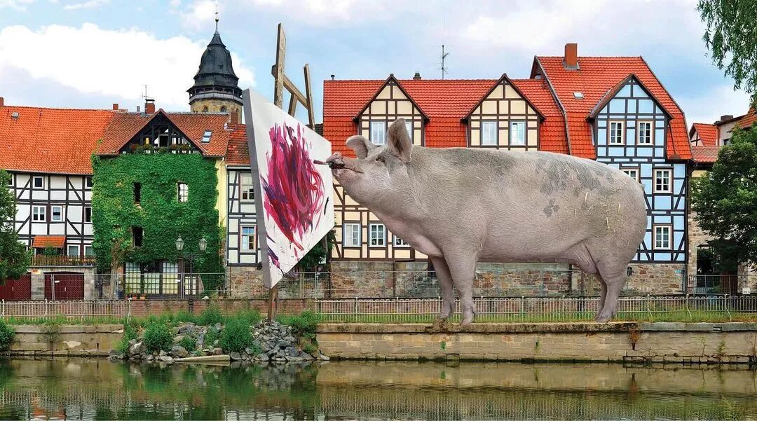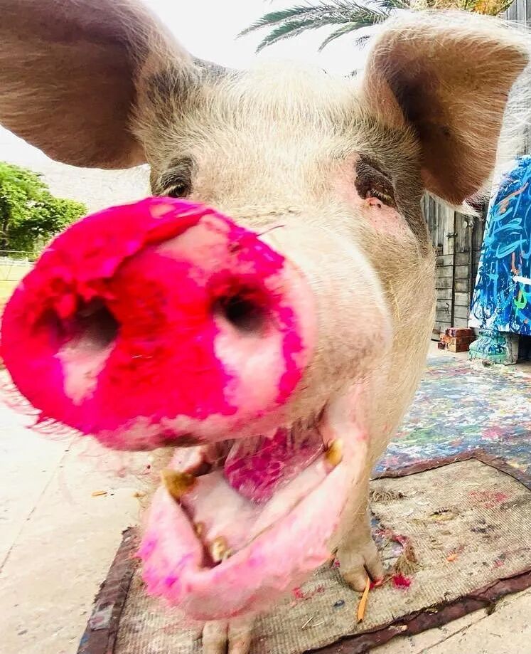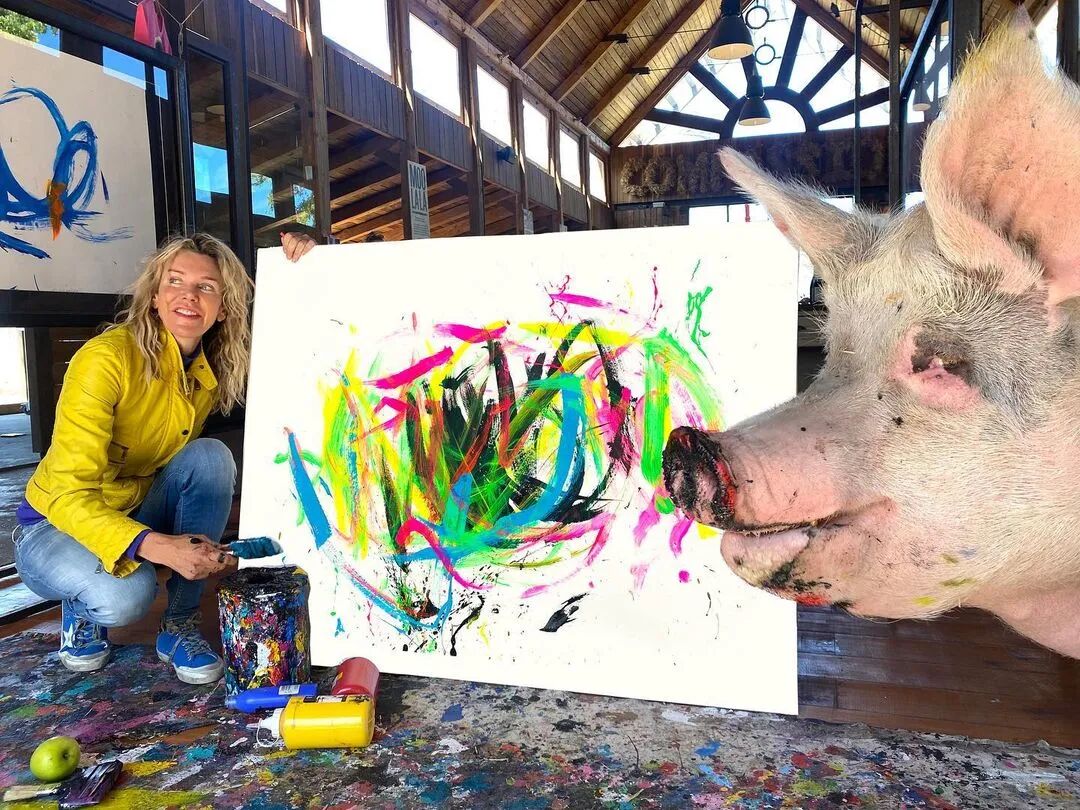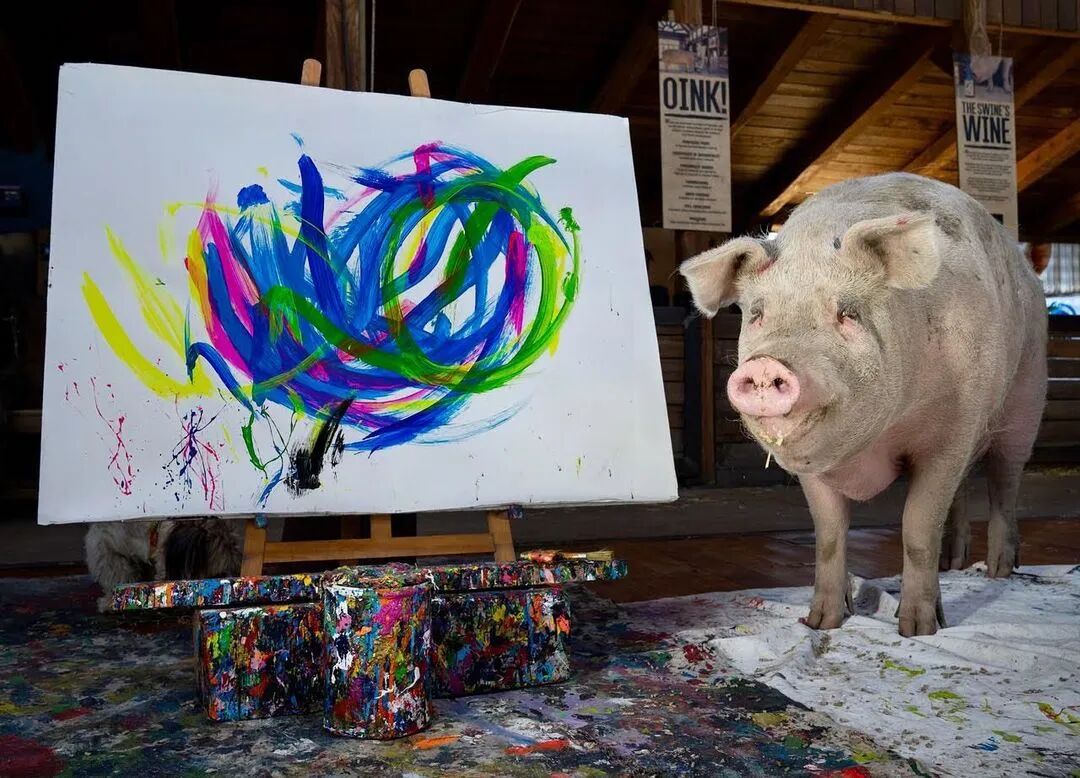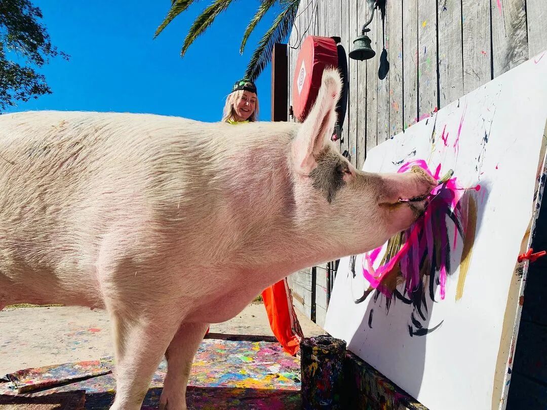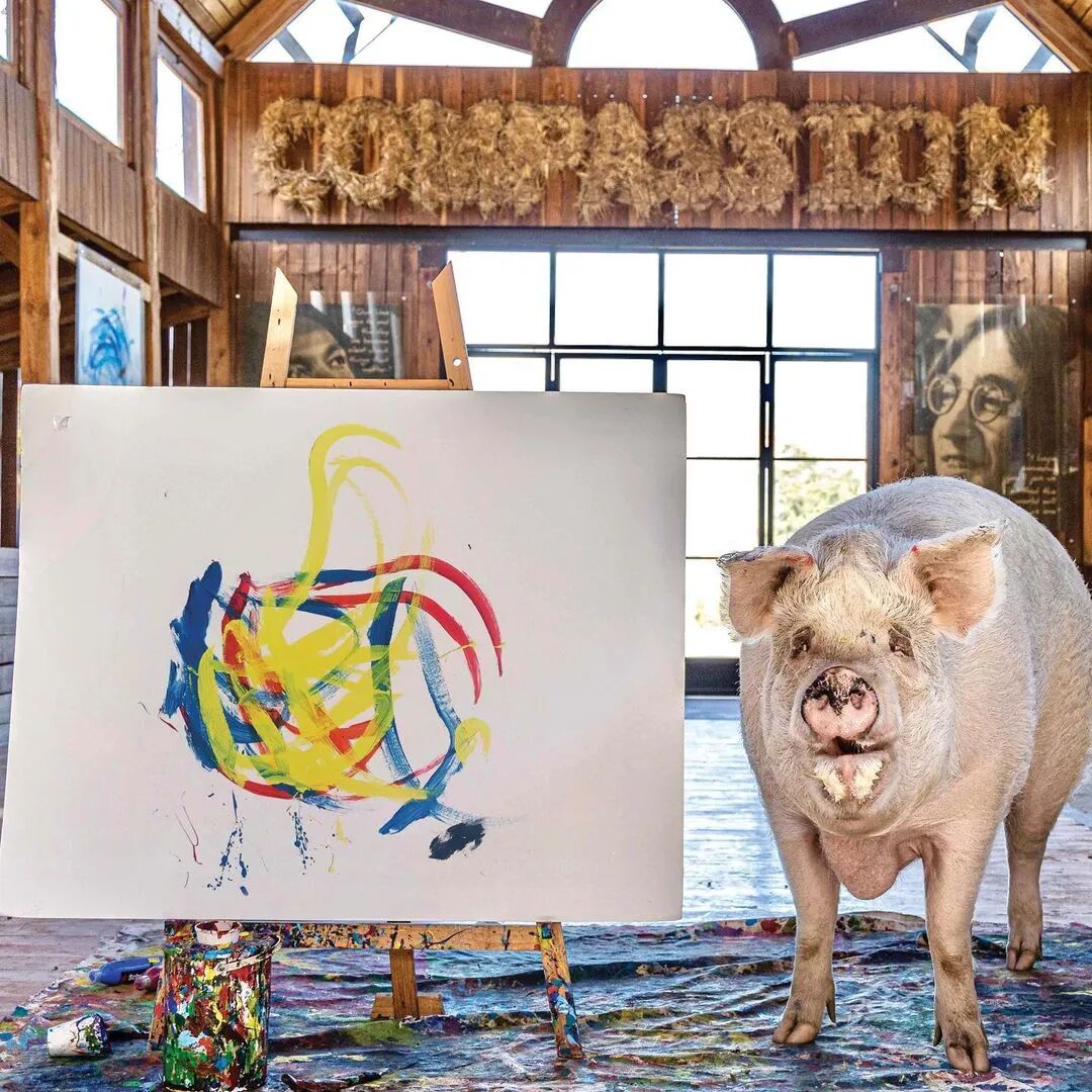 从那时起,Pigcasso创作了数百件艺术品,其中一些在官方网站上售价高达数千美元。据报道,其中一幅甚至卖到了2万多美元,这使它成为有史以来最昂贵的动物画。通过出售 Pigcasso艺术品筹集的所有资金都投资于农场保护区,这里不仅是猪的家园,也是牛、鸡、羊和其他获救动物的家园。