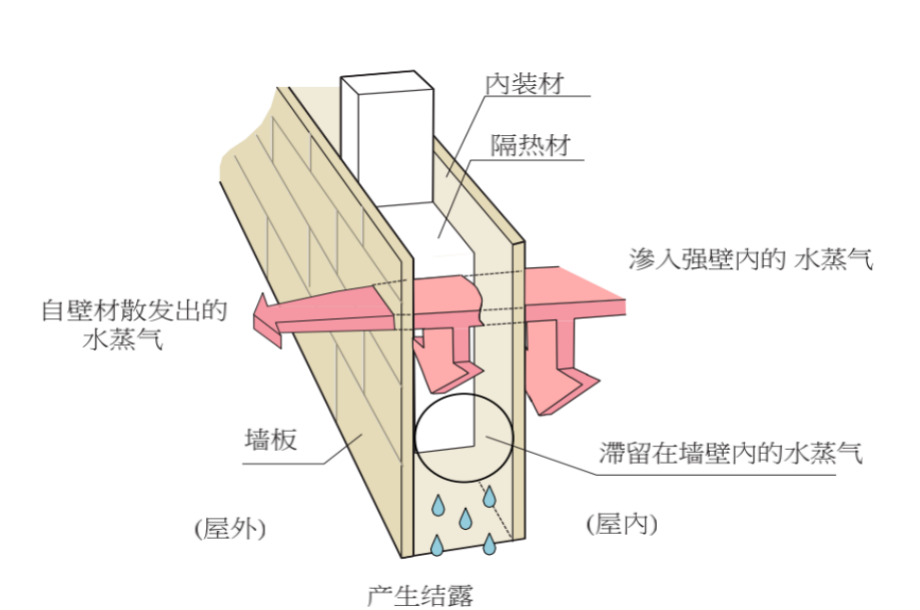 “透气构造”是在壁材内部设置空气的流通路径,散发湿气以提升住宅的耐久性、舒适性。