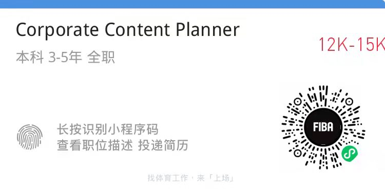 一周体育岗位推荐:FIBA国际篮联、关键之道、外星人体育、智扬传媒等14个岗位