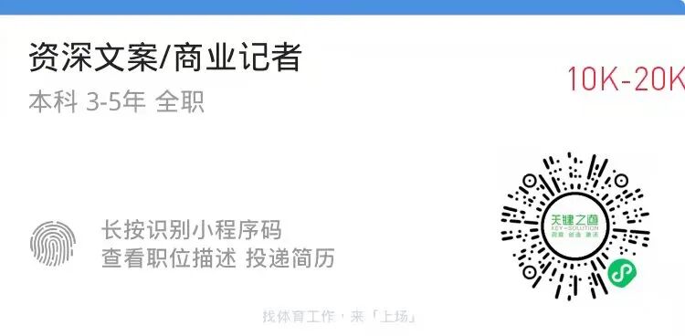 体育圈「上场」招聘是由ECO氪体独立研发,垂直于体育大健康领域的互联网招聘平台。自上线以来超过1300家公司发布岗位9000余个。目前已累计10万从业者简历,成功帮助优酷体育,环法中国赛,深圳网球公开赛等招募团队。