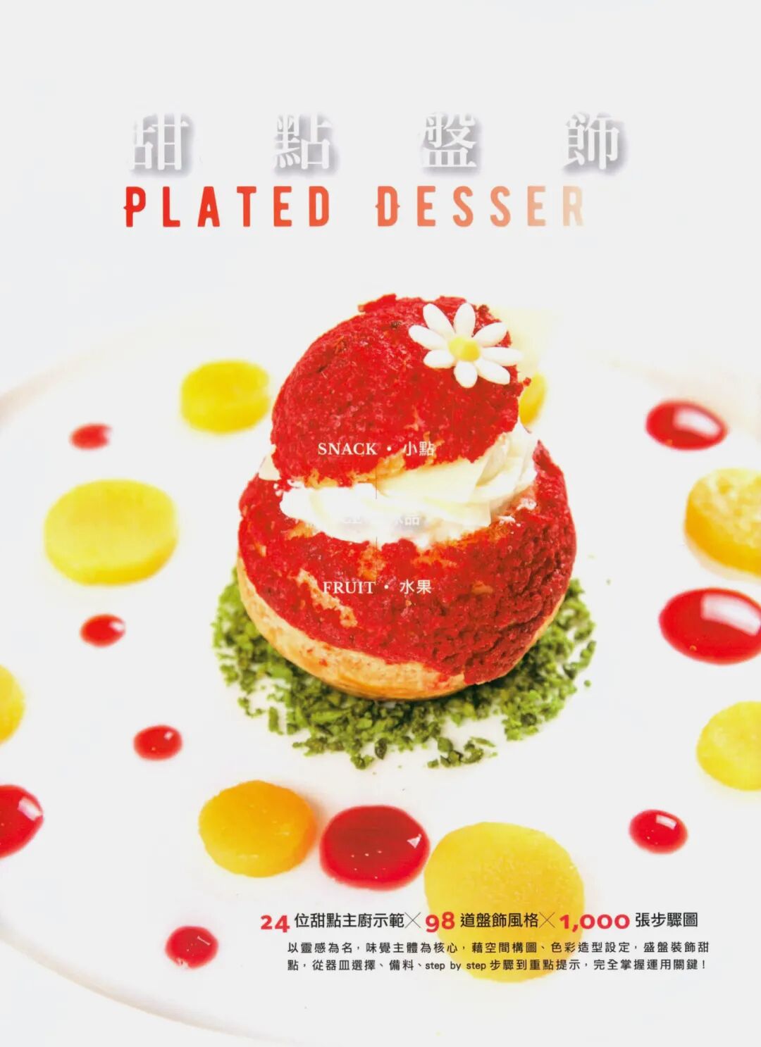 24位甜点主厨示范×98道盘饰风格×1000张步骤图,以灵感为名,味觉主体为核心,借空间构图、色彩造型设定,创造甜点的细腻平衡,开启一场有温度的对话,传达创作者的初心。通过盘饰创作,让每一道料理或是甜点都像艺术品般充满奇妙幻想。