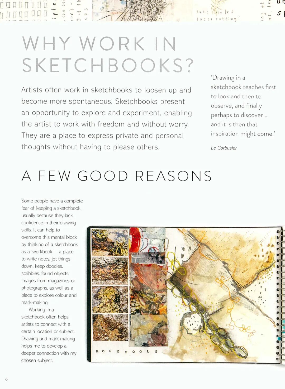 Shelley Rhodes是一名当代混合媒体艺术家,她擅长将纺织品、纸、线等各种材料与绘画、印刷等艺术形式相结合,创造出各种新奇的作品。本书介绍了她如何用素描本来记录自己的创作过程和经历。如何灵活的利用素描本,将自己观察到的、想到的东西落实到纸面,然后再进行进一步的筛选、过滤,不断完善自己的想法与创作。