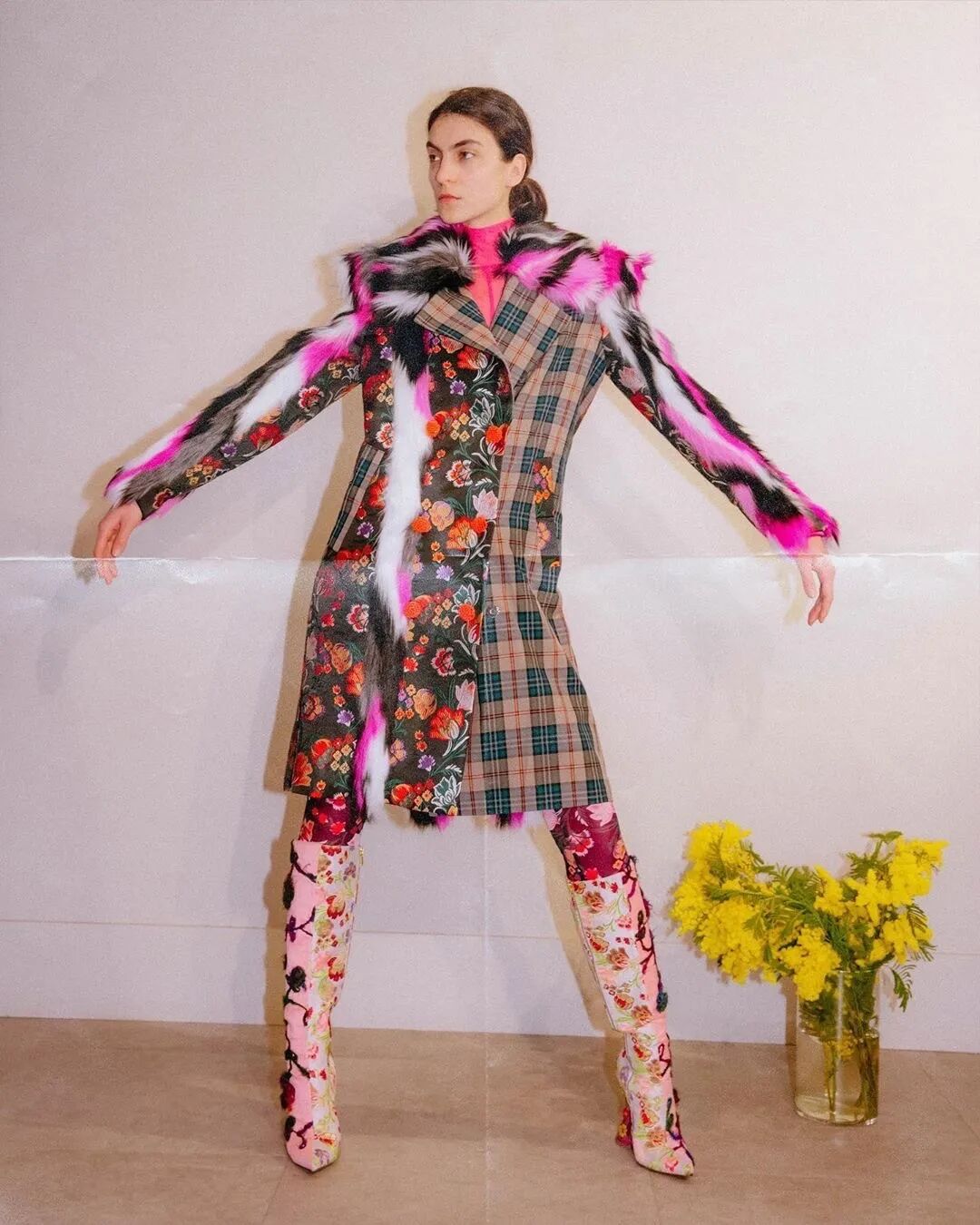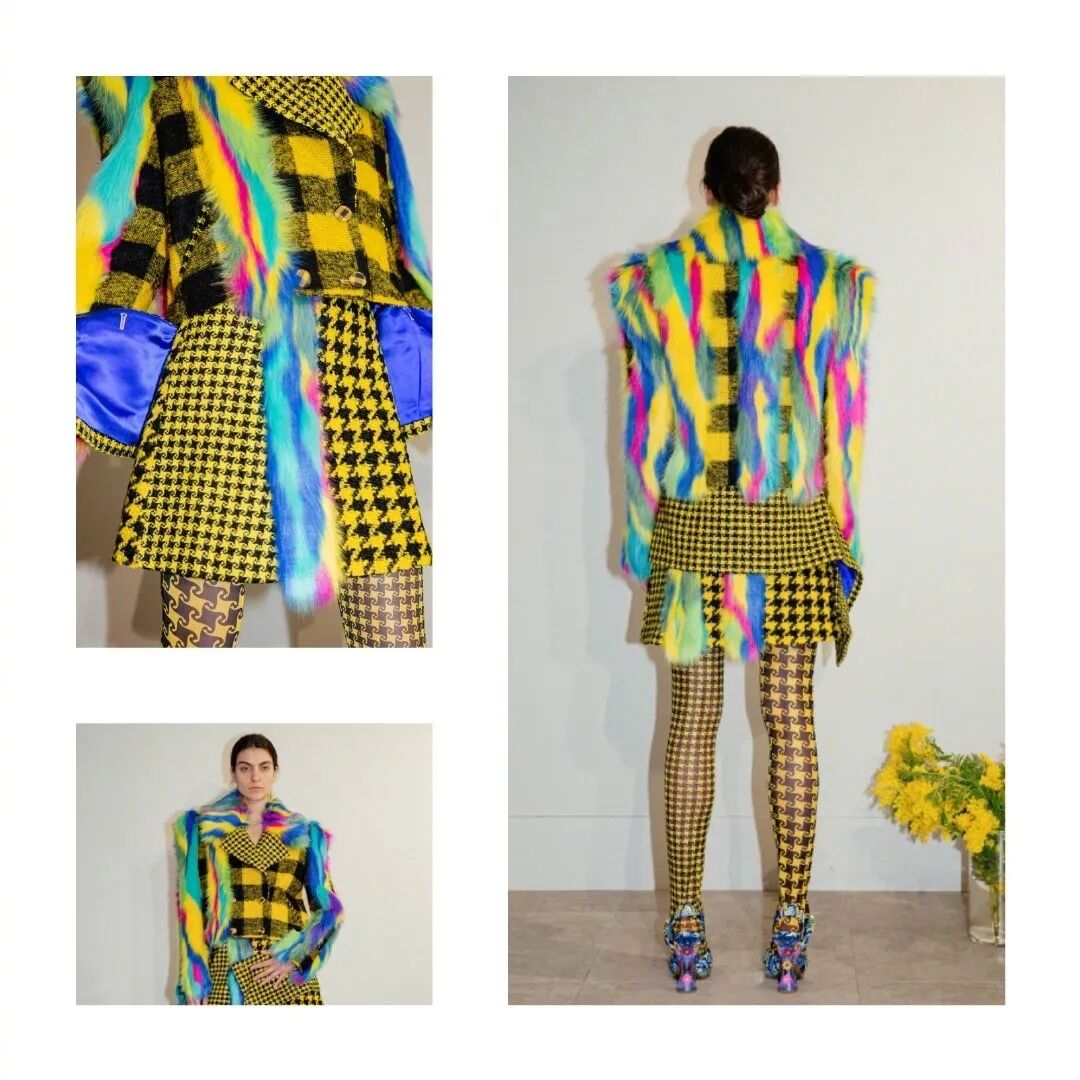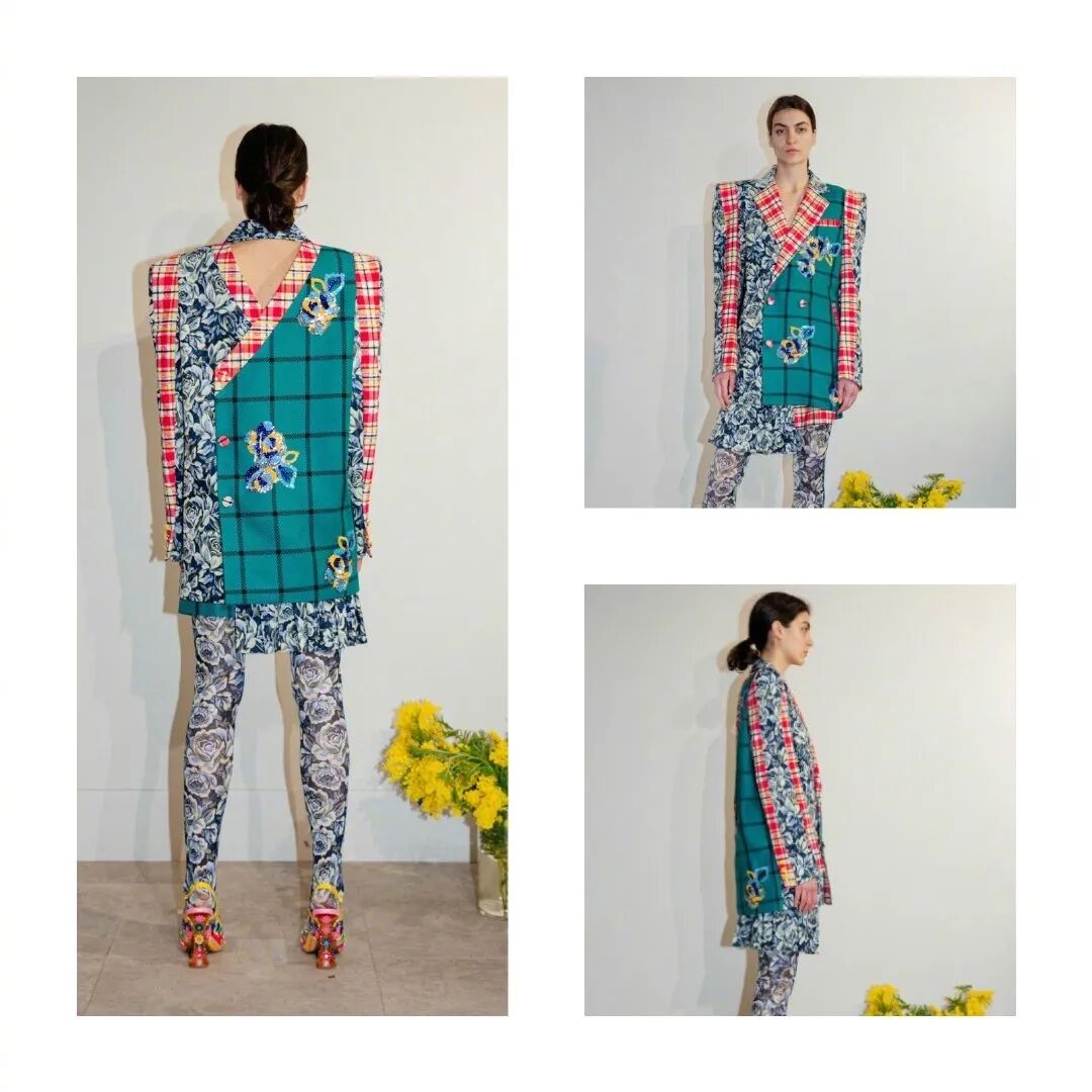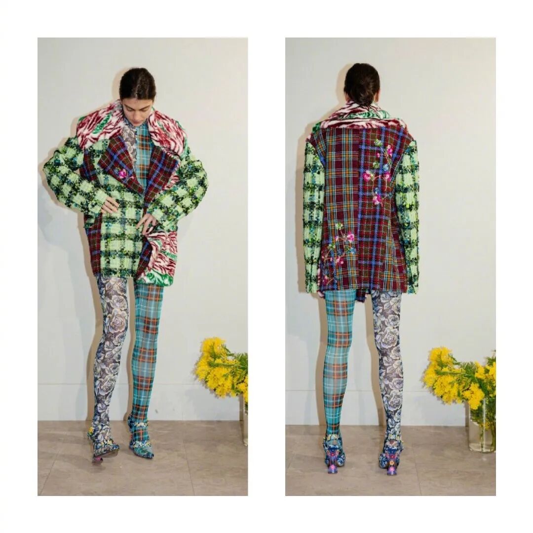 继续着SHUTING QIU经典的撞色印花元素,我们似乎能感受到设计师为人们带来的力量感。SHUTING QIU喜欢将多元文化和对社会的看法注入到设计中,或是以一个中国人的视觉对不同民族文化和当代艺术进行解读。