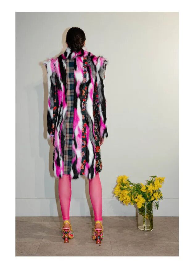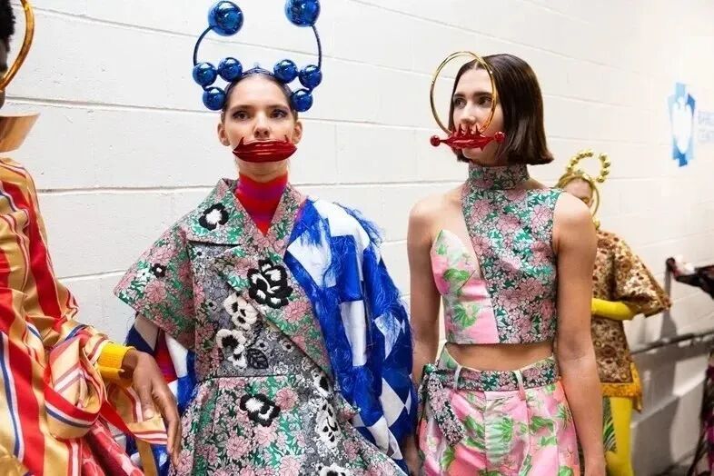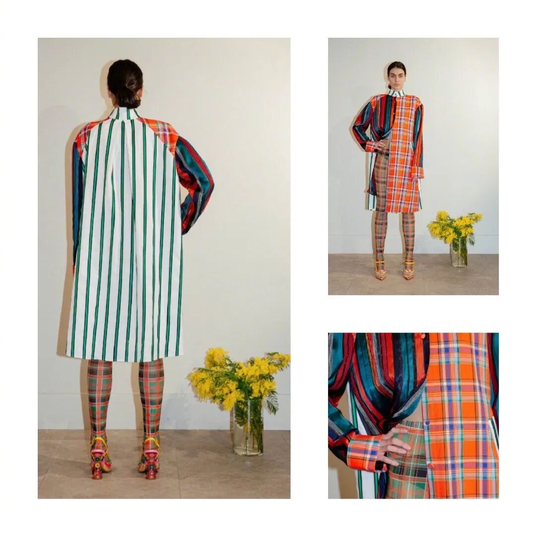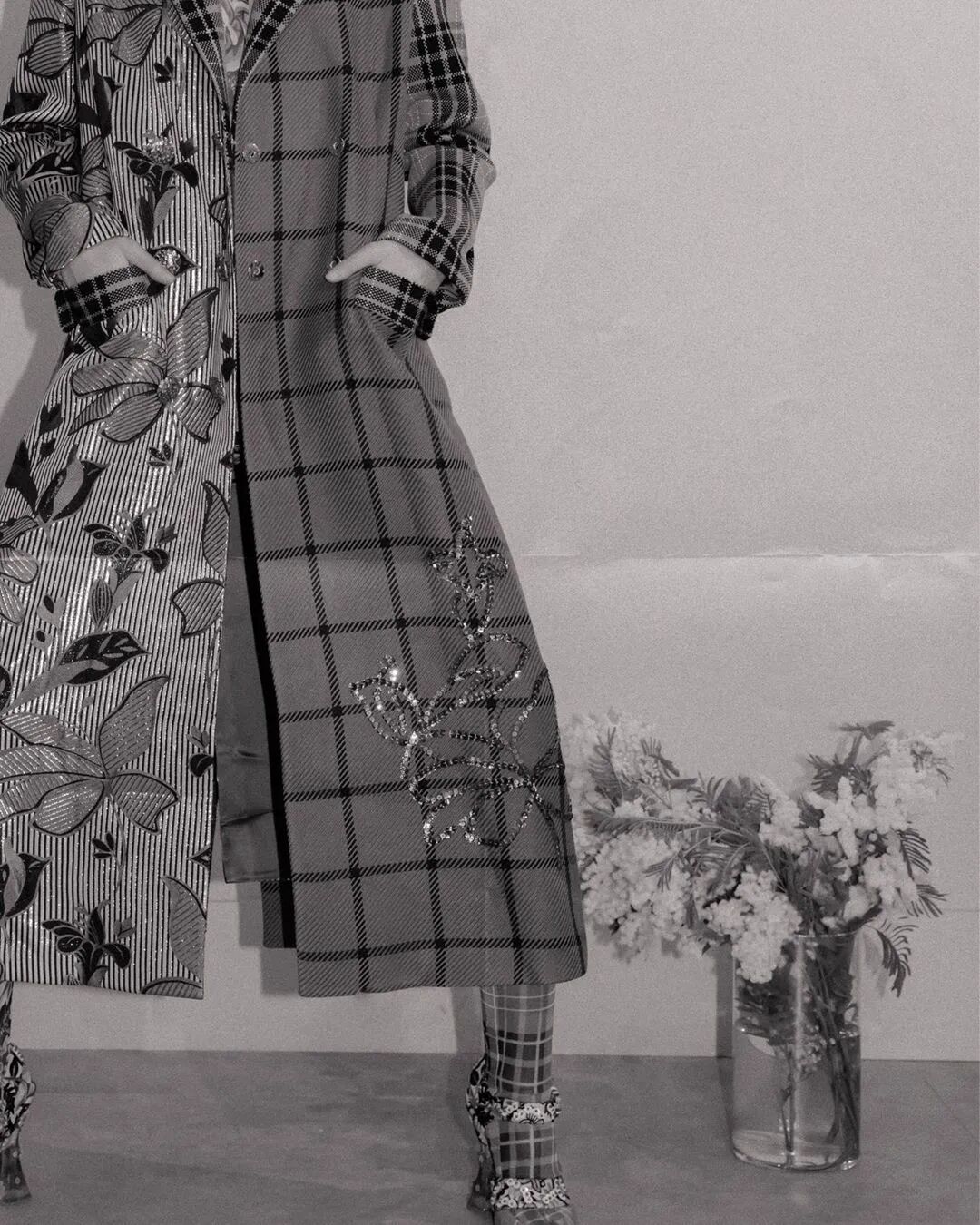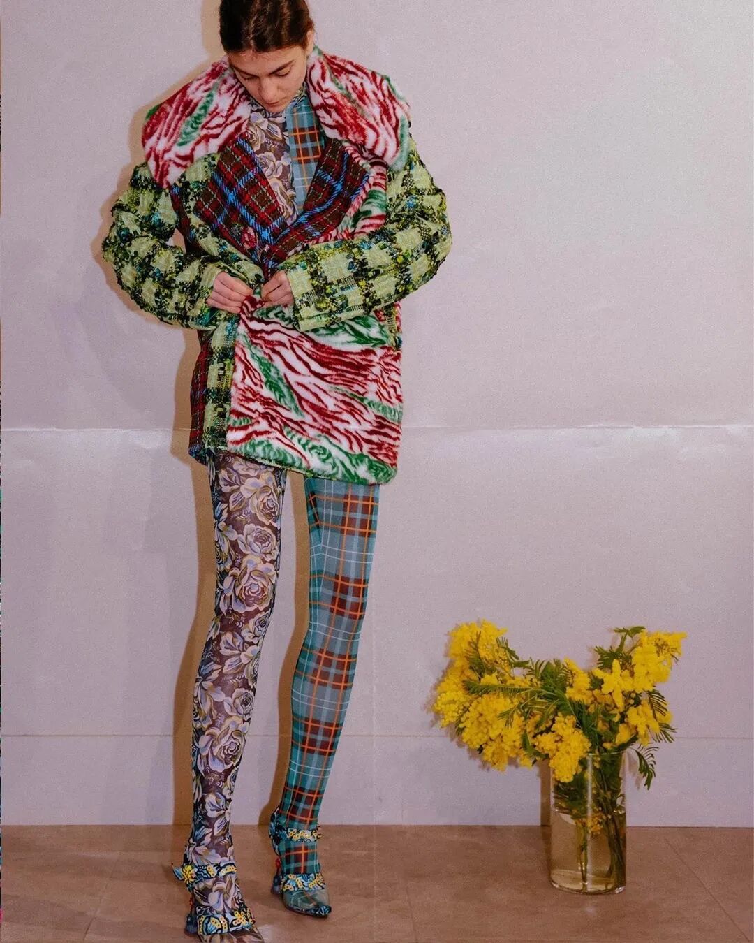 继续着SHUTING QIU经典的撞色印花元素,我们似乎能感受到设计师为人们带来的力量感。SHUTING QIU喜欢将多元文化和对社会的看法注入到设计中,或是以一个中国人的视觉对不同民族文化和当代艺术进行解读。