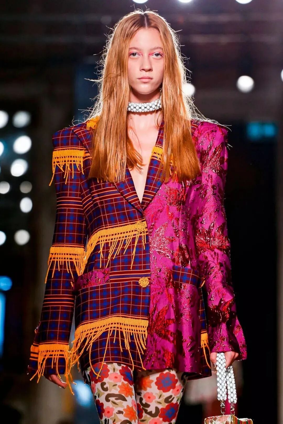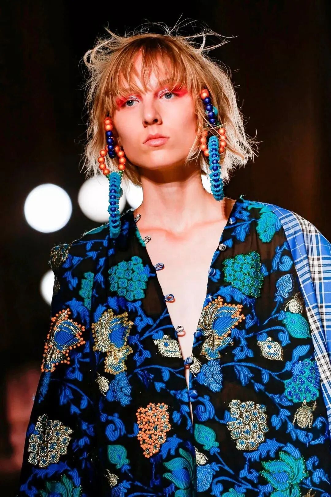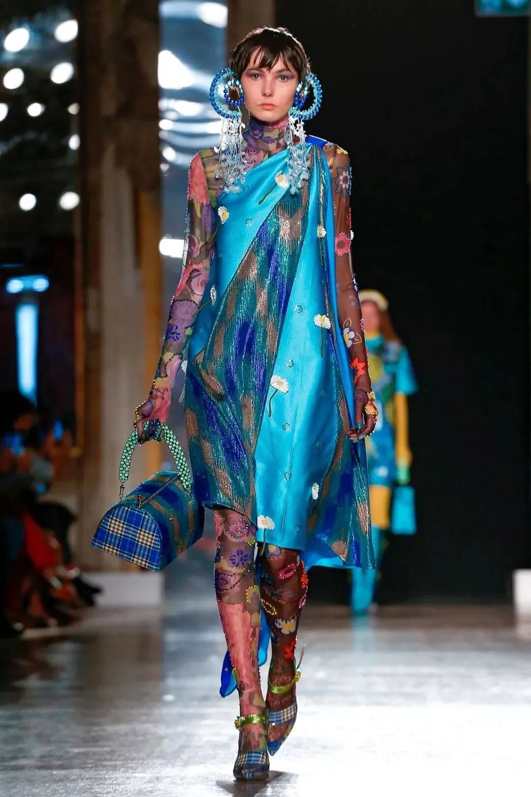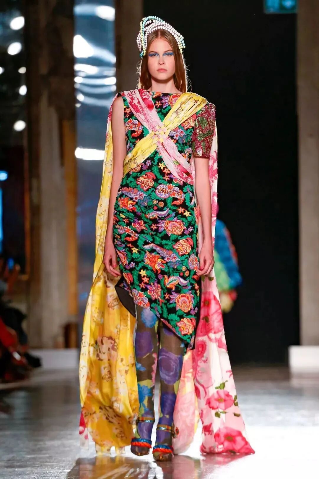 你能看到SHUTING QIU对面料设计的部分十分的用心,她将来自印度纯粹的、原始的大色块和手工刺绣钉珠工艺结合到英伦风格之中。