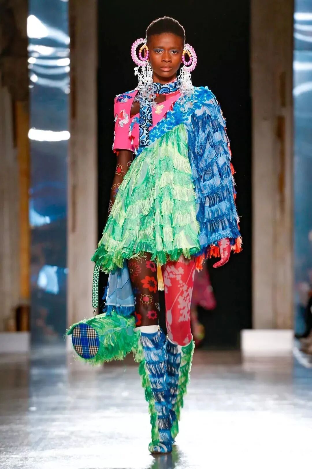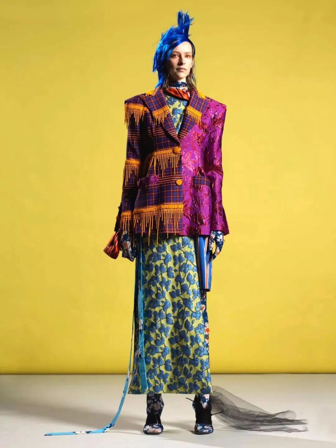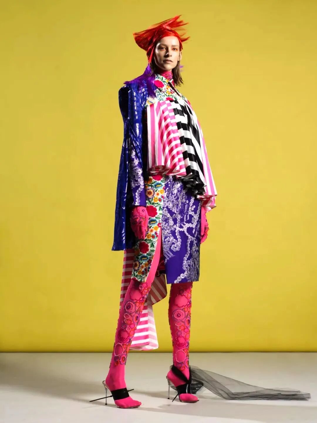 强劲的视觉冲击,让SHUTING QIU富有张力的美学融入在服装之中,多种色彩与花样的融入更是将繁杂深深的植入到面料之中。