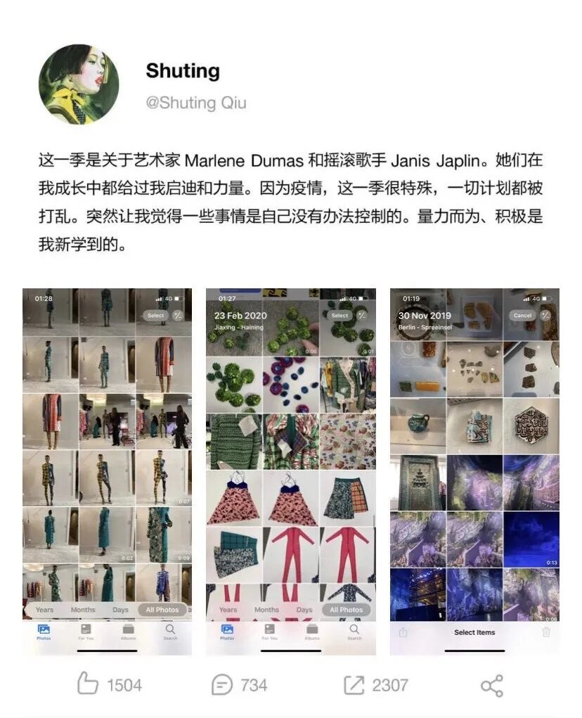 无论是旅行、看展、阅读、还是看电影,SHUTING QIU都是爱的。在日常中收藏灵感的素材,让她的设计之中充满了骨血,敏锐的捕捉能力。