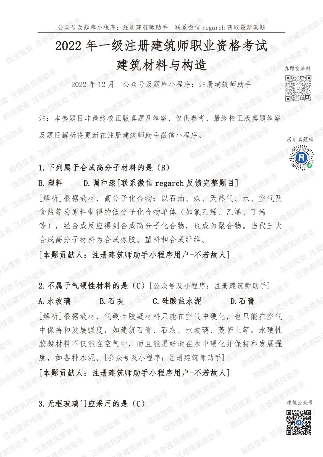 2022年12月一级注册建筑师职业资格考试——建筑材料与构造