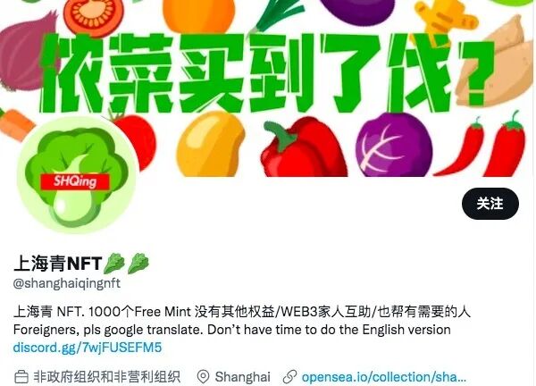 上:上海青NFT推特页面截图