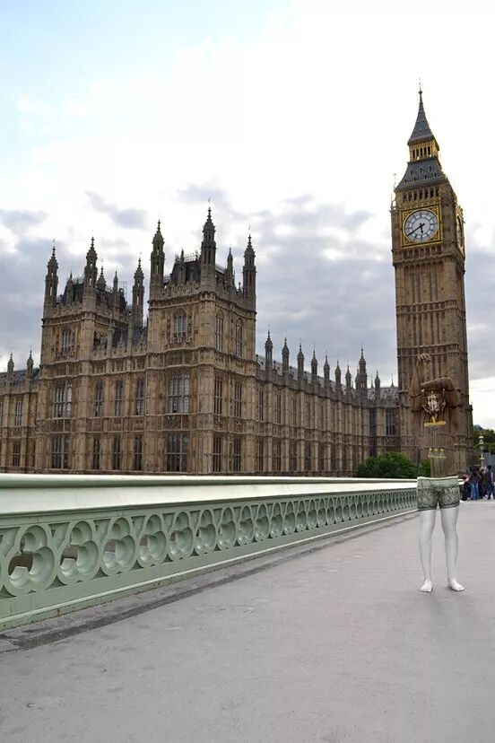 这些景观被惟妙惟肖地描绘在模特身上,站在景观里的模特与周围环境完全融入在一起,就像透明人一般。在照片里模特像是在街头隐身了一样,而在实际创作中,由于模特身上涂满颜料,颜色过于鲜艳。从而受到路人关注,带来了不必要的麻烦。