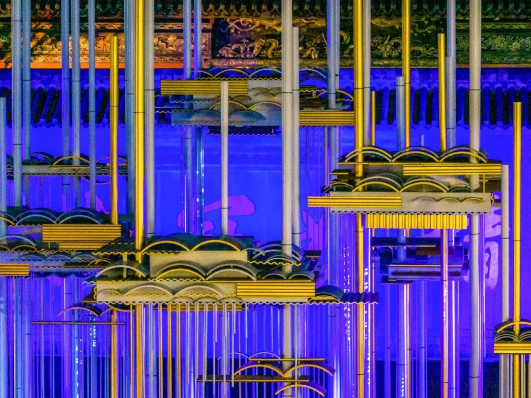 仰视时,立柱穿透瓦片云直指苍穹,充满向上而生的坚毅之力。在此,存在于过去、现在和未来之间的分界消散,共筑“大成之美”。