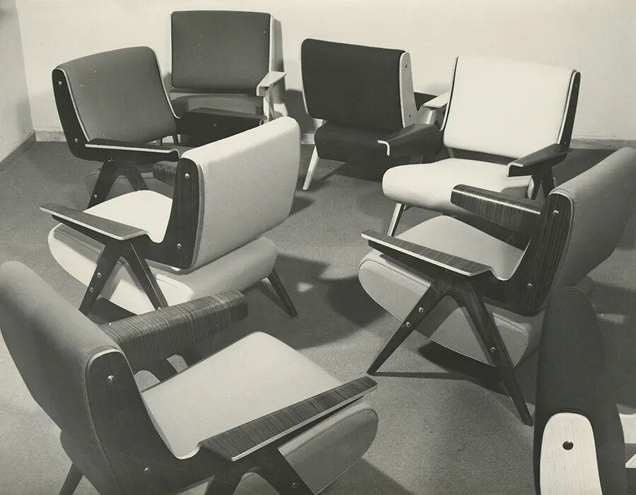 他们改进了设计并创造出吸引大众的作品:半成品胶合板家具。这些作品采用胶合板制成,具有优雅、简单和有机的形状,以实惠的价格生产,适合具有现代风格品味的新兴市场收藏家。