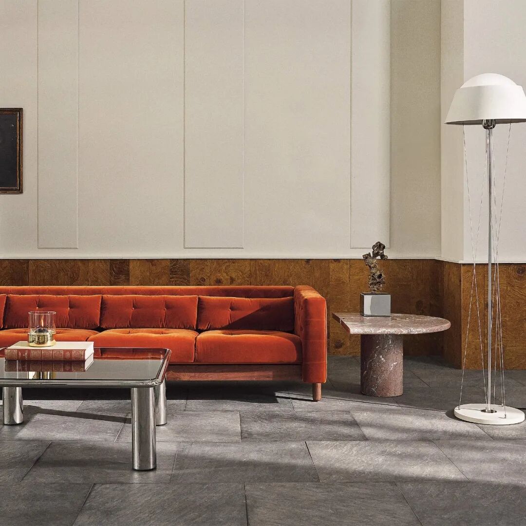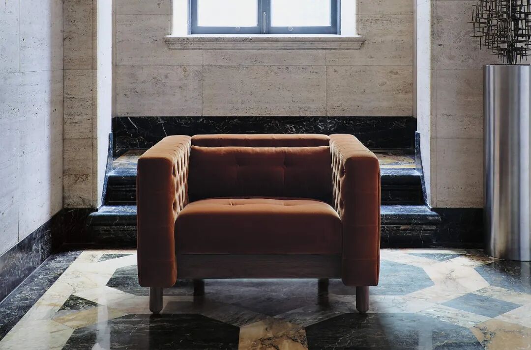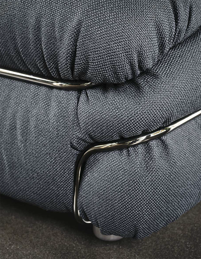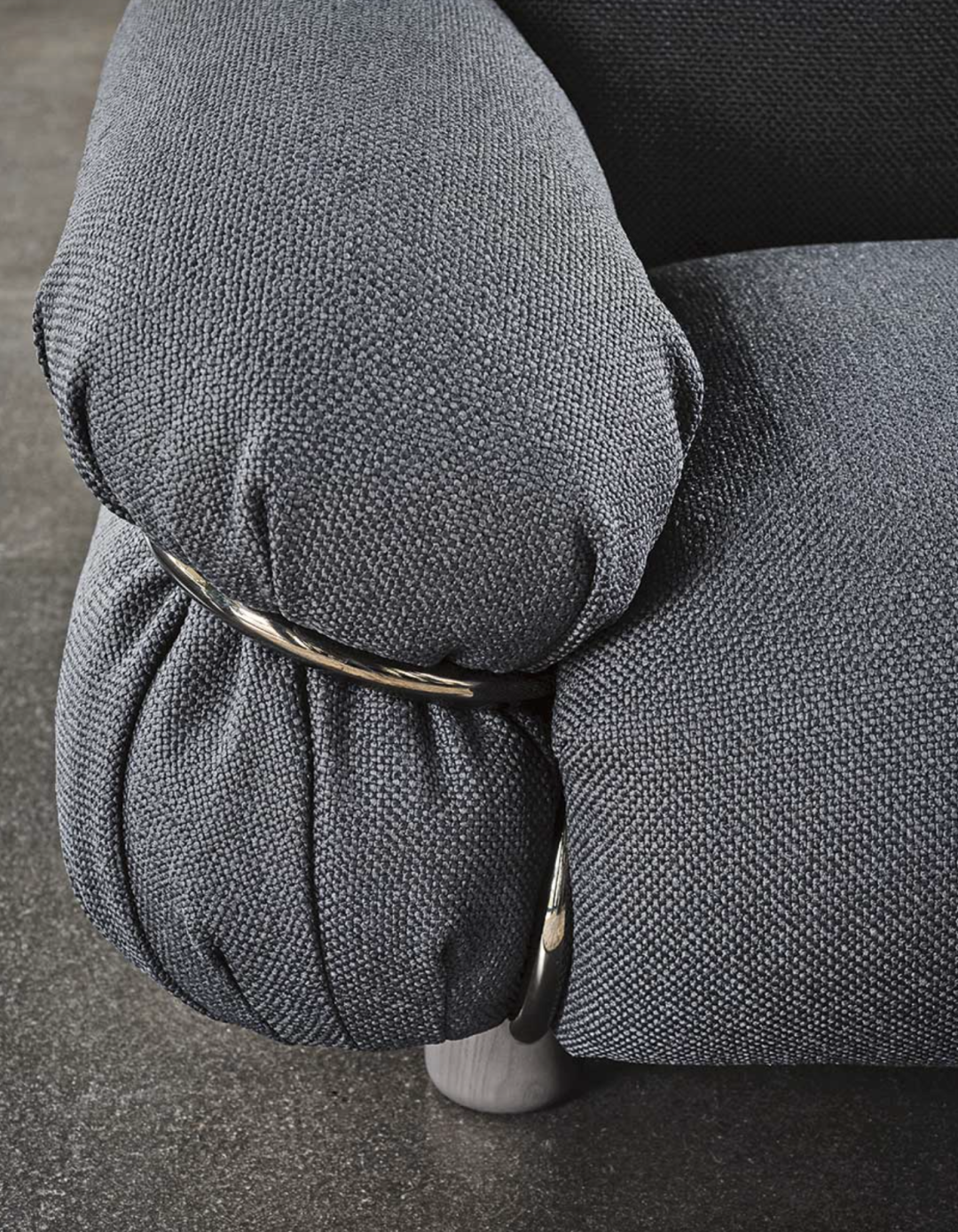 最初由 Gianfranco Frattini 为位于老米兰市中心的时尚餐厅 St. Andrews 设计。现在,现代经典以与原始设计相同的精神回归。具有时代特色的细节包括内侧和靠垫上的手工缝制纽扣簇绒,以及代表设计师标志性风格的嵌入式胡桃木腿。