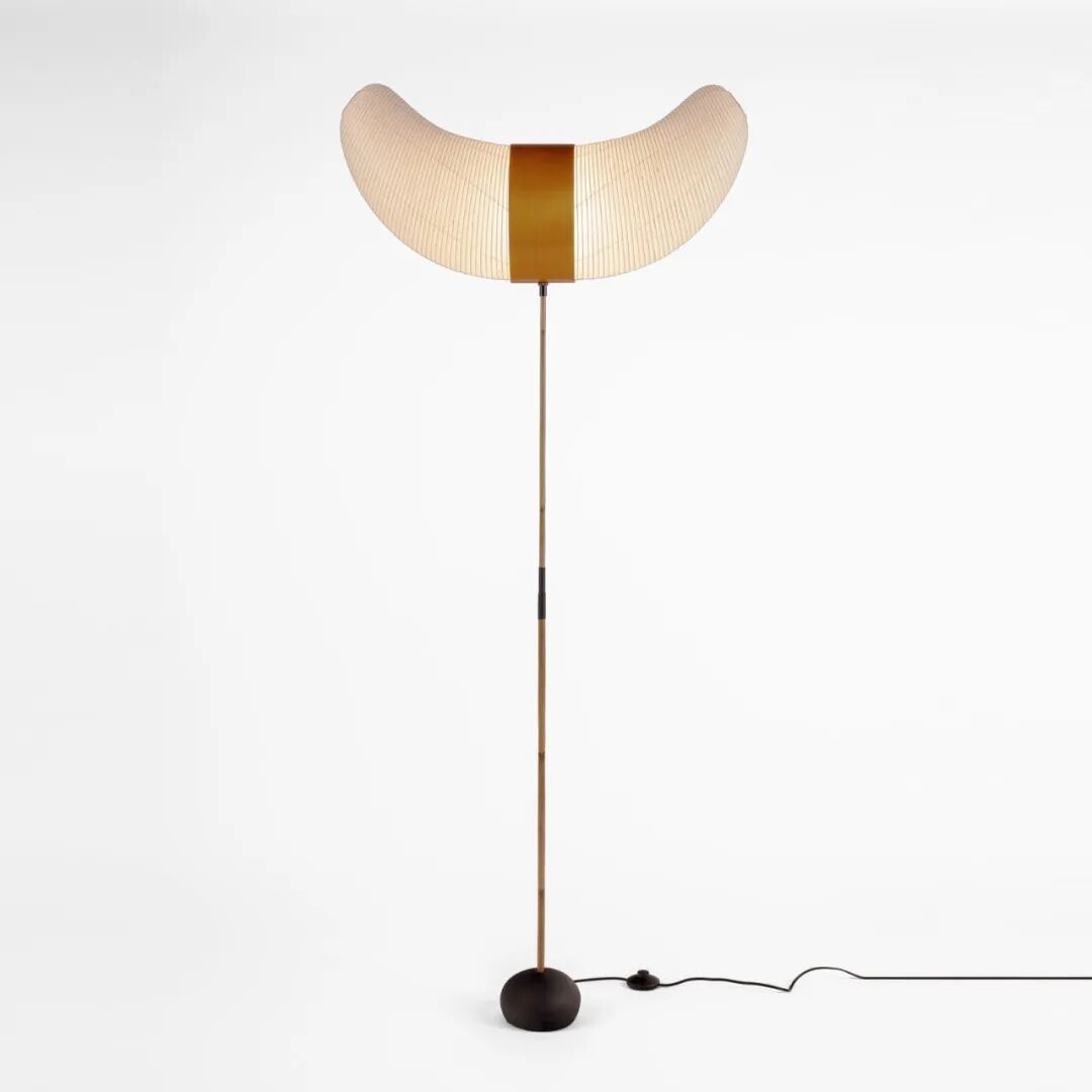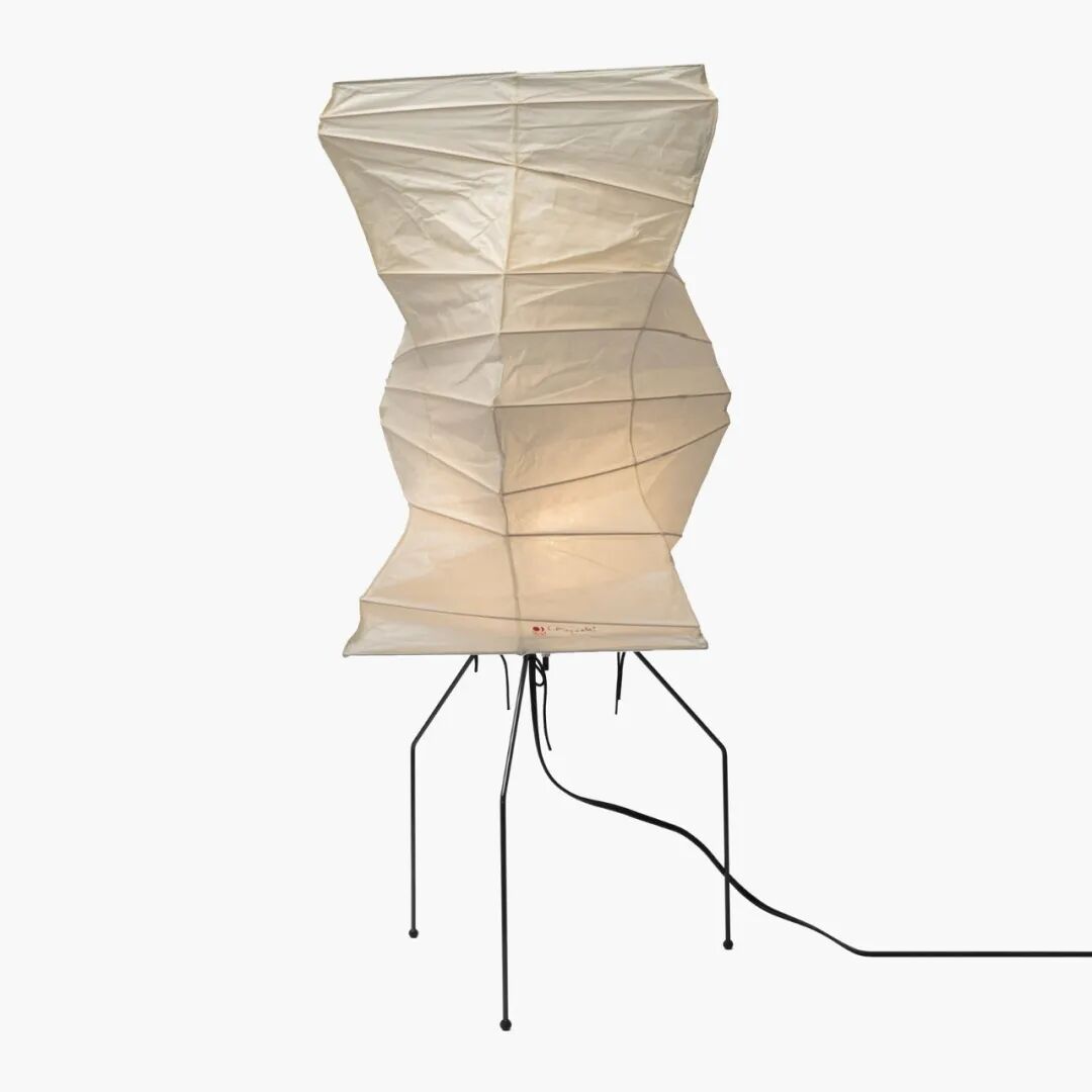 “1951 年,野口勇参观了日本岐阜镇,该镇以用桑皮纸和竹子制造灯笼和雨伞而闻名。野口设计了他的第一盏灯,该灯将采用传统的岐阜建造方法生产。他将这些作品命名为Akari,这个词的意思是光作为照明,同时也暗示着失重的概念。”