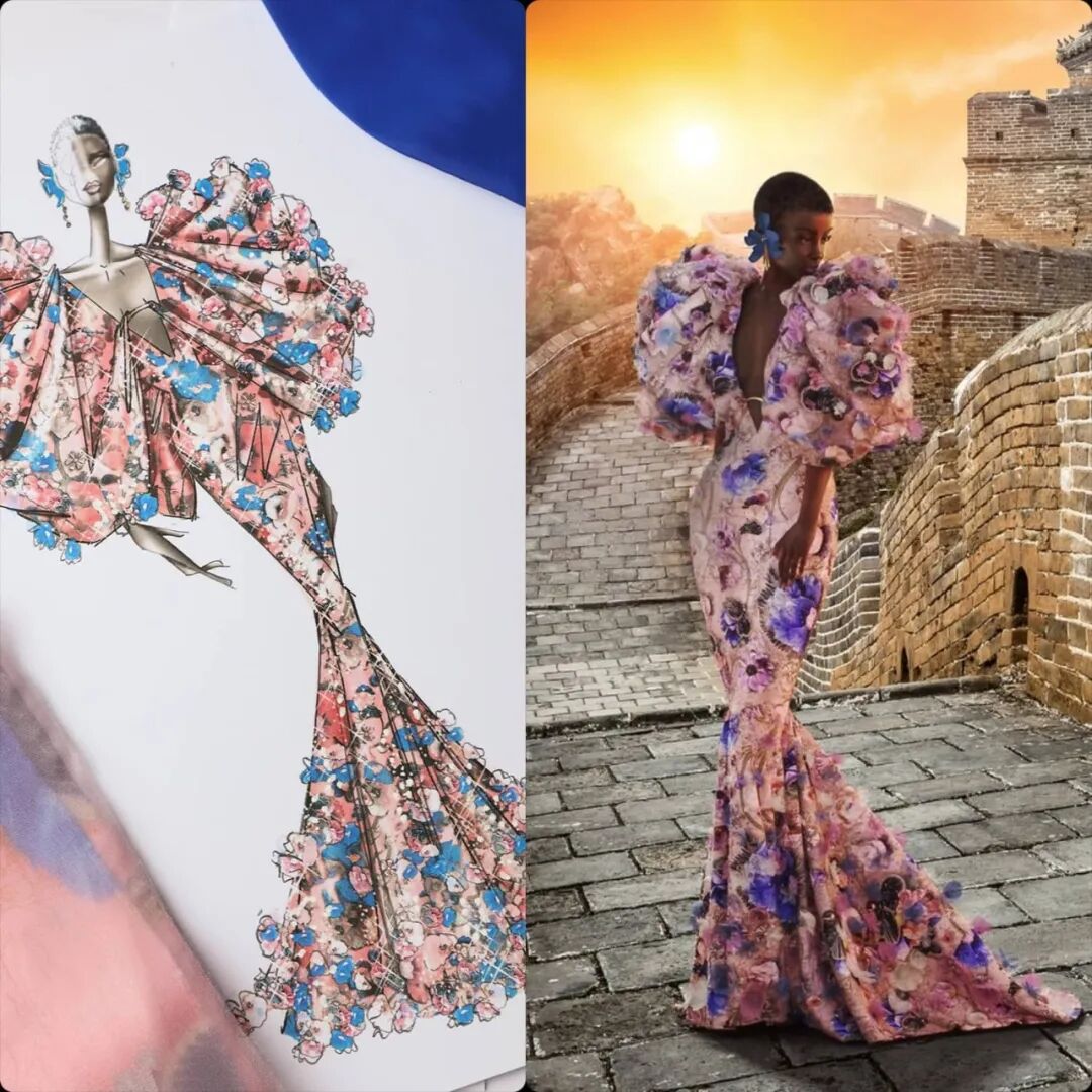 最令人惊喜的一幕,莫过于设计师通过电脑后期虚拟图像,让穿着本季高级定制礼服的黑人虚拟模特Hauli,依次打卡中国万里长城、巴西里约热内卢耶稣像、古罗马斗兽场、印度泰姬陵等世界七大奇迹建筑,她们希望以此鼓励所有人去展望未来和追逐梦想。