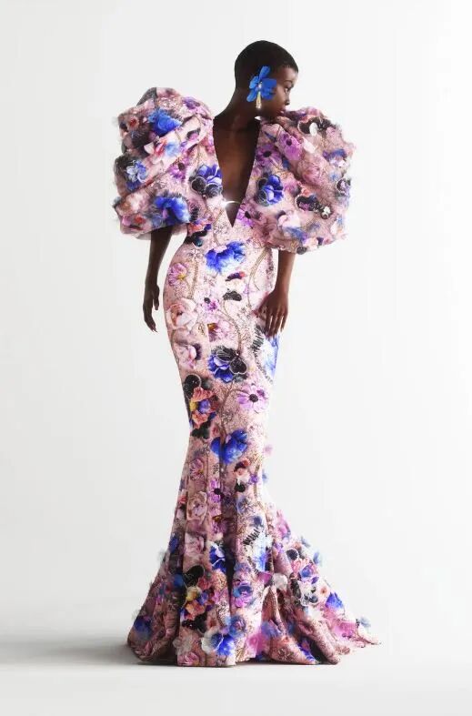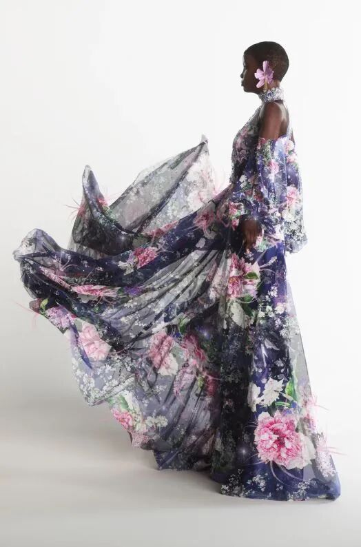 黑人虚拟模特Hauli身为设计师Tamara Ralph这一季的缪斯女神,为品牌Ralph & Russo演绎了本系列通过电脑3D建模制作的8套虚拟高定时装礼服。若是不细心观察,近乎达到了"以假乱真"的效果。