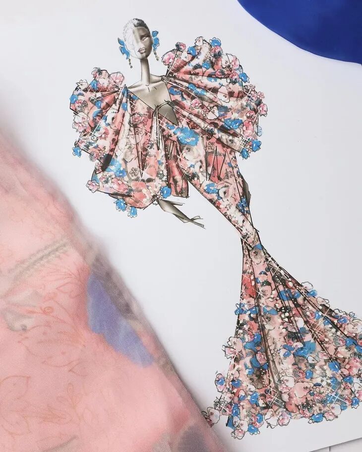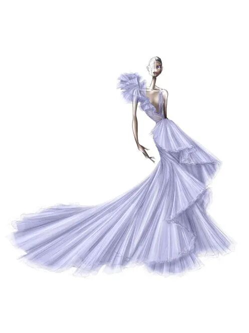 2020秋冬巴黎线上高定时装周, Ralph & Russo 为这一季手绘了52套时装,虽然实际制作仅为7套,为达到最理想的呈现效果,设计师们还用3D建模专门制作了8套虚拟高定礼服