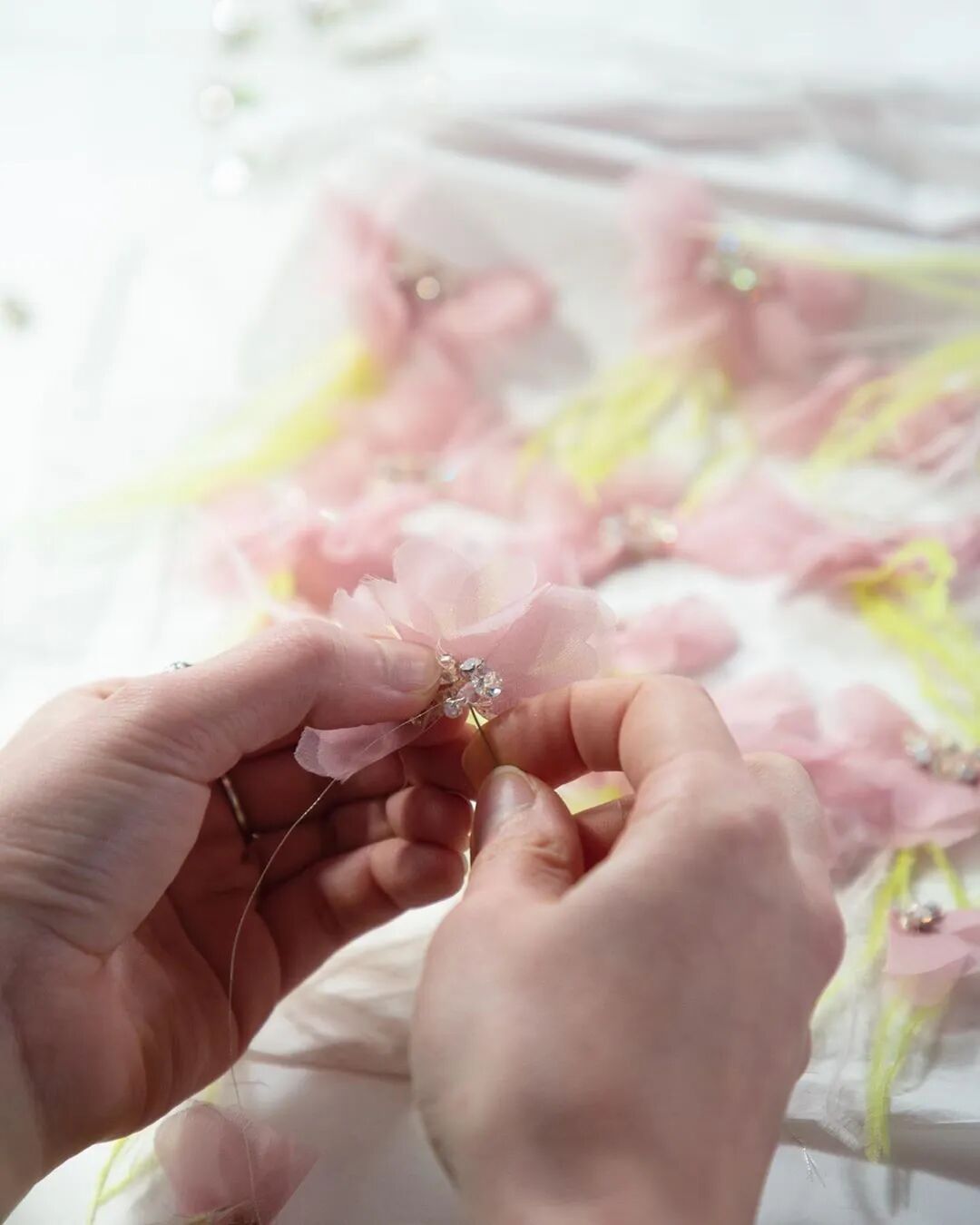 创意总监Tamara Ralph将工作室视为家庭一般的存在,为每一位员工创造了舒适的工作空间。羽毛、薄纱、闪钻、花朵,在这里都是手工匠人、造梦师们创造梦幻疆域的最佳利器