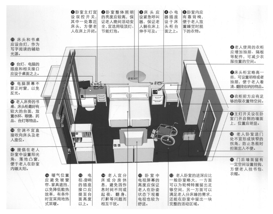4. 老人视力和听力欠佳,其专属座位和其他座位间距离不宜过远,防止老人无法辨别说话人表情和口型。