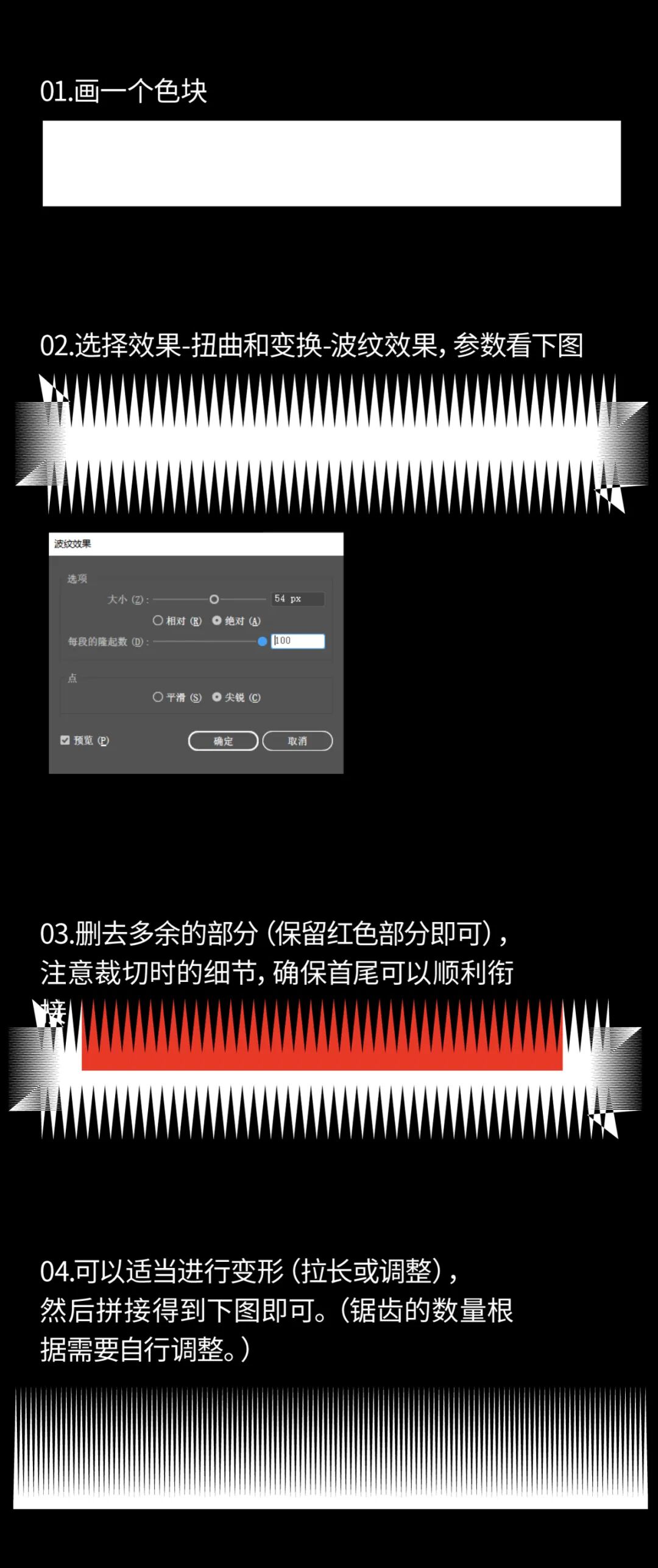 主要的难点在于控制锯齿的数量,和路径的变化,仍然是因为画笔工具会产生一定程度的变形,不容易控制,需要反复尝试,才有可能得到最优解。