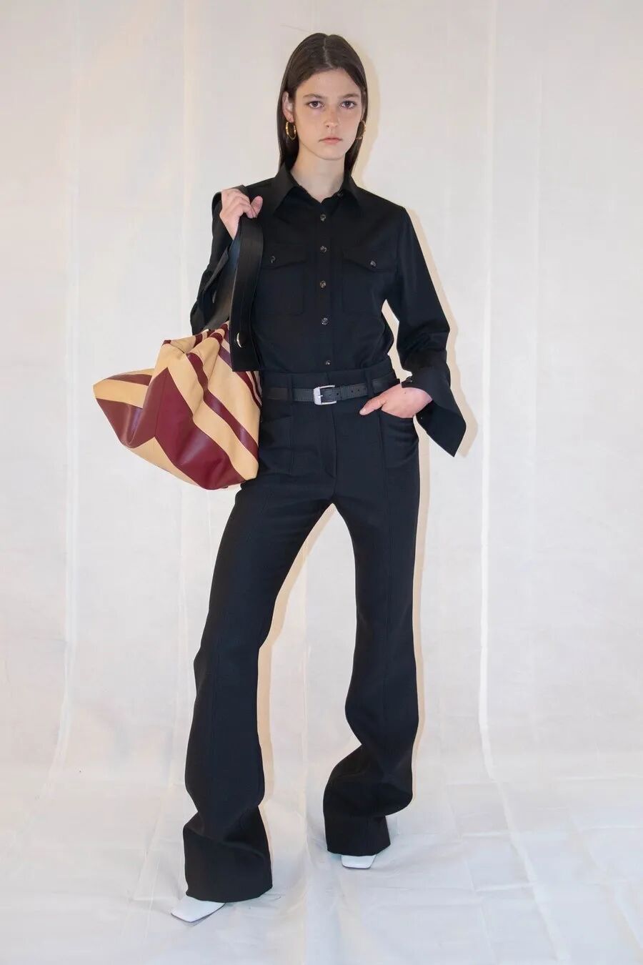 Jack McCollough解释自己的设计时,往往带着批判性的观点,“我们对创造季节性太强,甚至过时的时尚并不感兴趣。”他想创造的是一个衣柜,具有功能性、实用主义色彩的时尚空间。