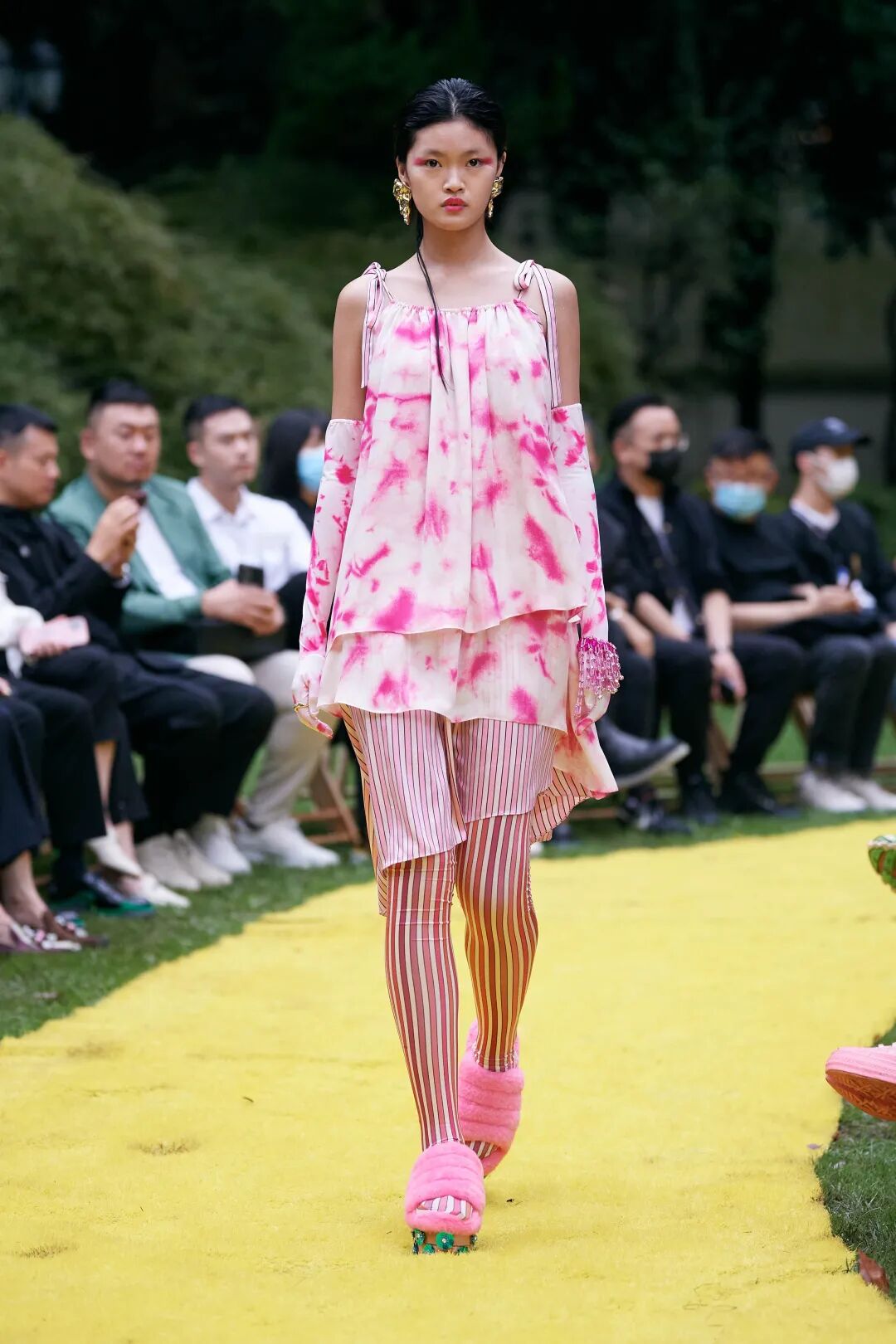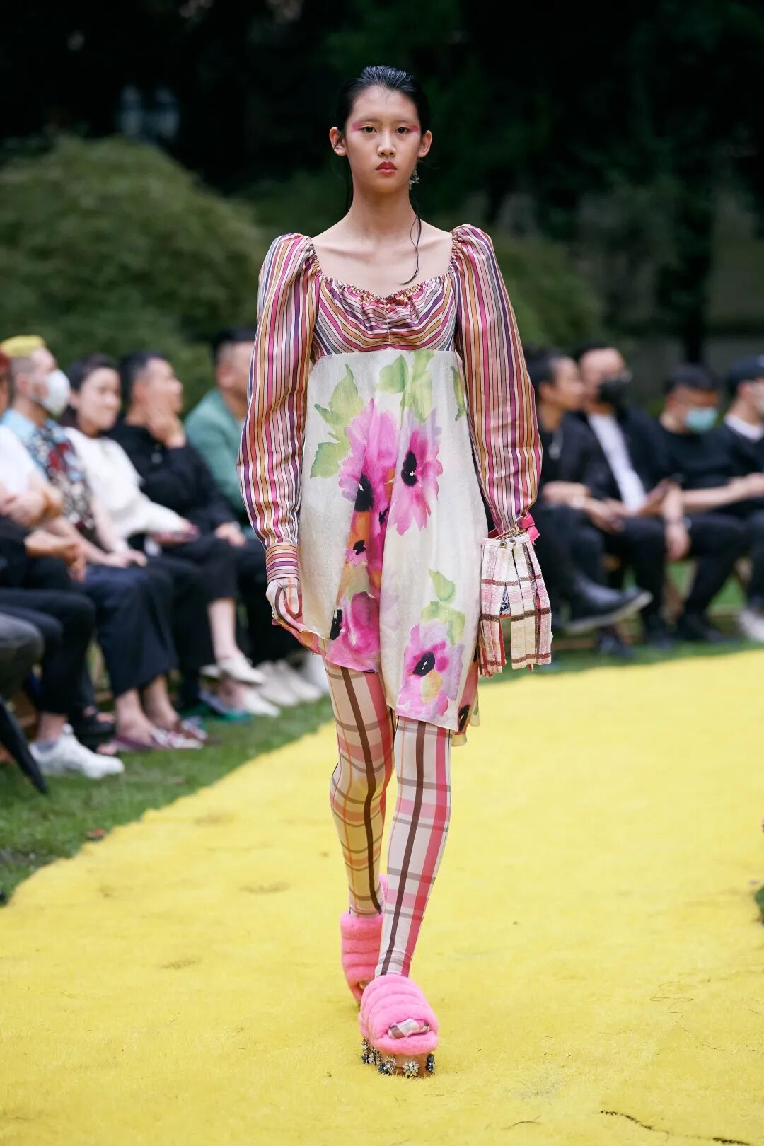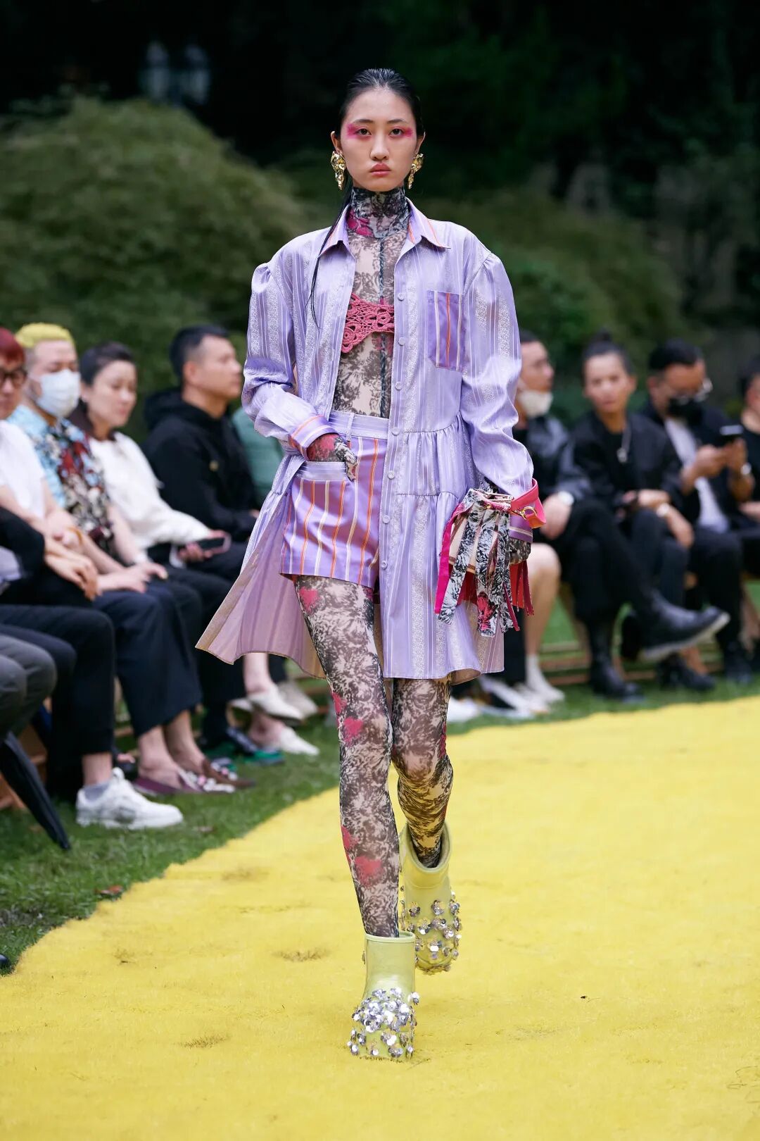设计师SHUTING在保持品牌强烈标签式特色的同时,设计师开始将焦点转向内在,探索自我,追忆过去,回到童年时期在故乡杭州写生时的情绪,以此牵引出本次2022春夏系列。
