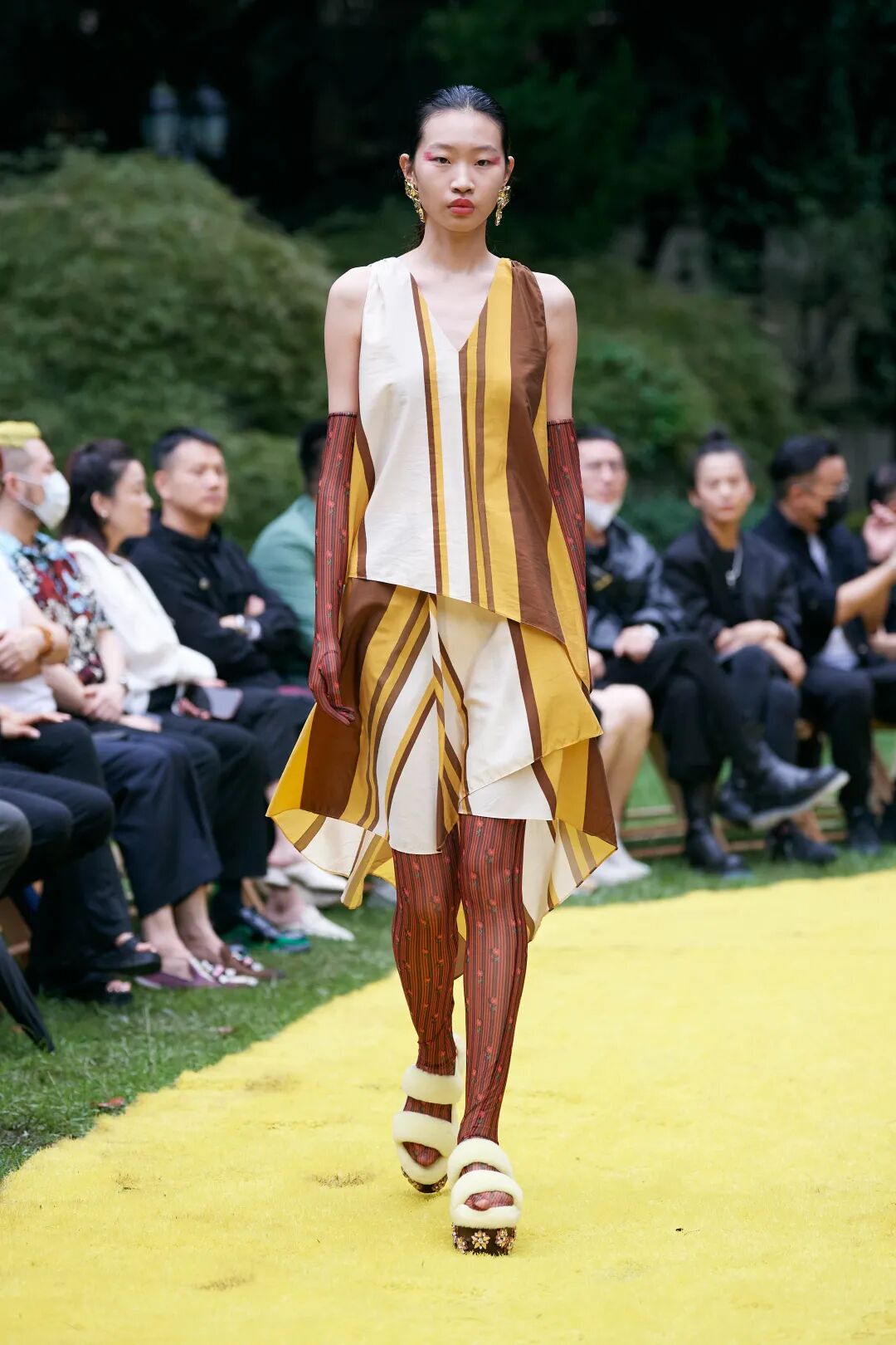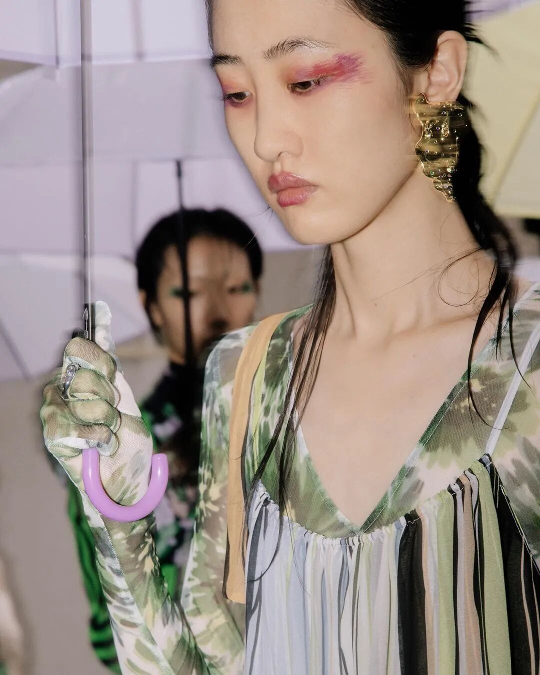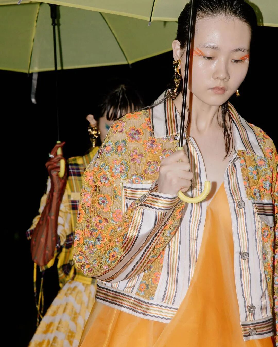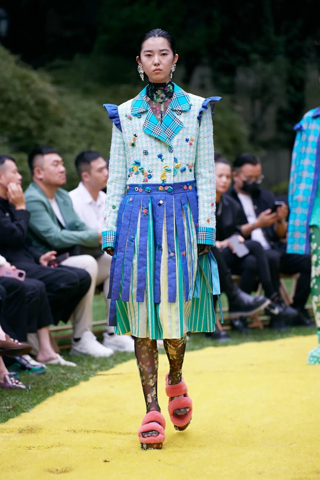 设计师SHUTING在保持品牌强烈标签式特色的同时,设计师开始将焦点转向内在,探索自我,追忆过去,回到童年时期在故乡杭州写生时的情绪,以此牵引出本次2022春夏系列。